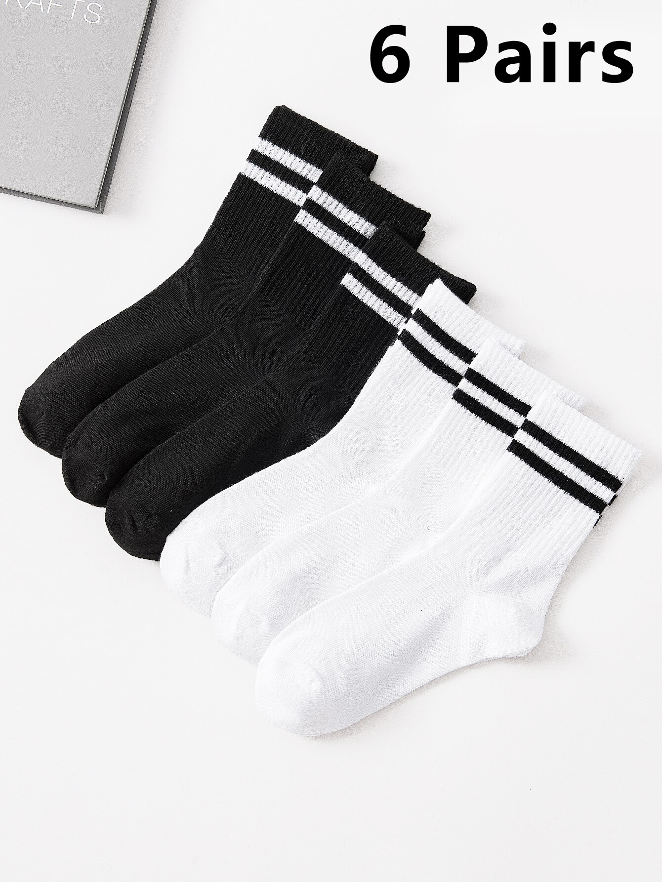 5 Pairs Of Women's Black And White Striped Socks Set Minimalist Style Embroidered Pentagram Women's Sports Socks Cotton Socks