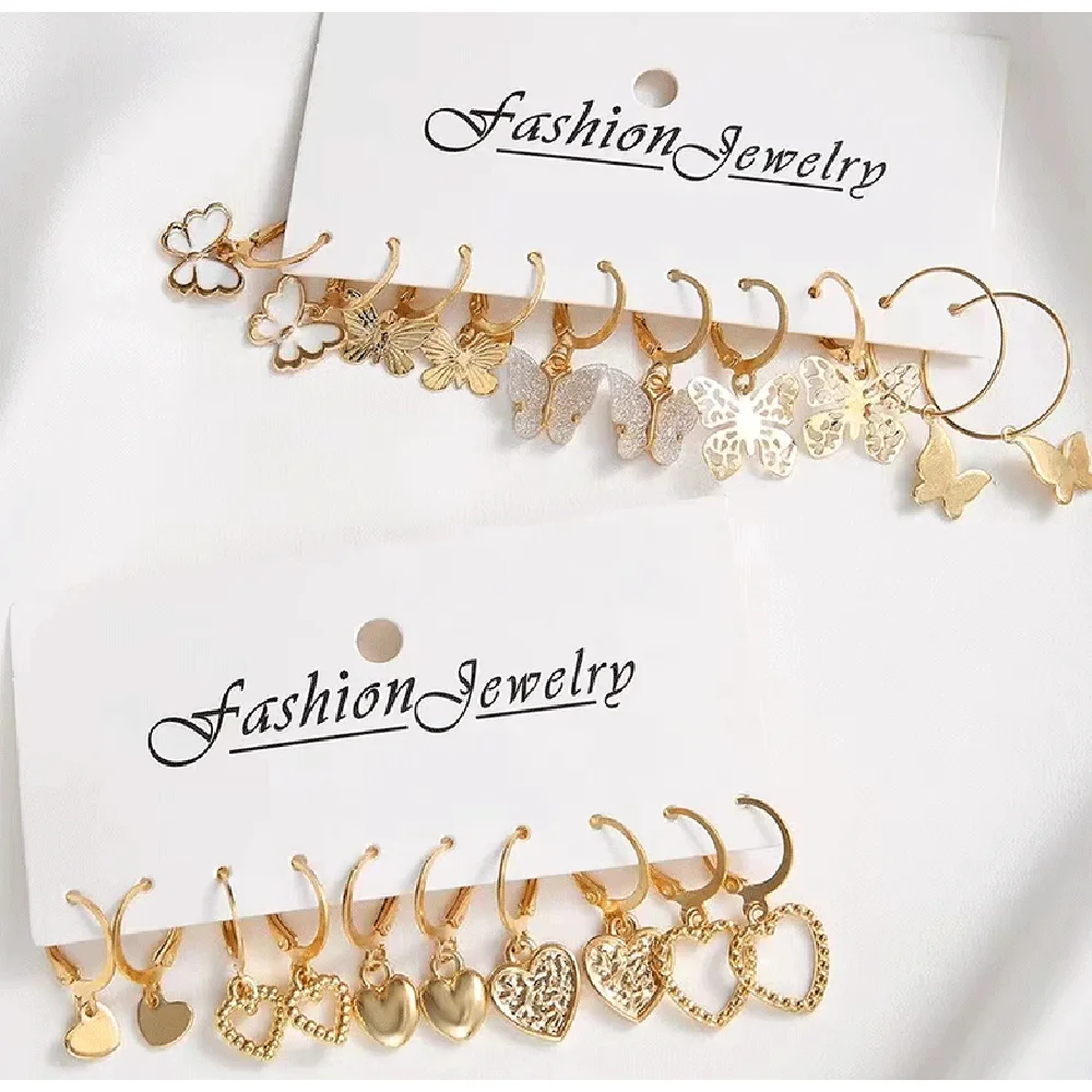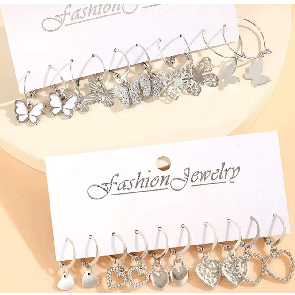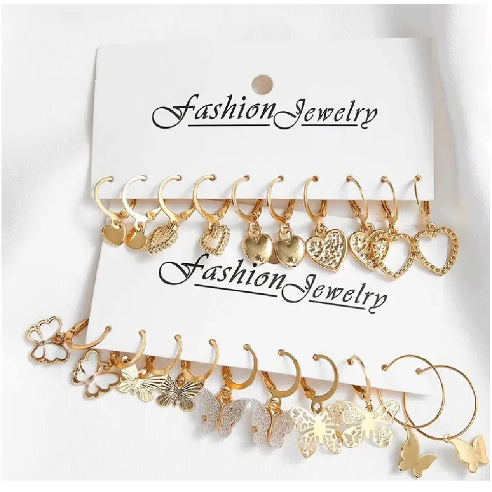 ↑10 Pairs Women Animal Butterfly Heart Earrings Set Retro Simple Fashionable Versatile Personalized C Ring Buckle Earring Beads 1 - TopDealBox