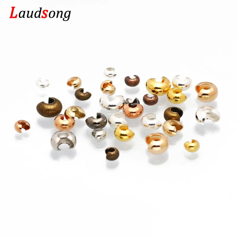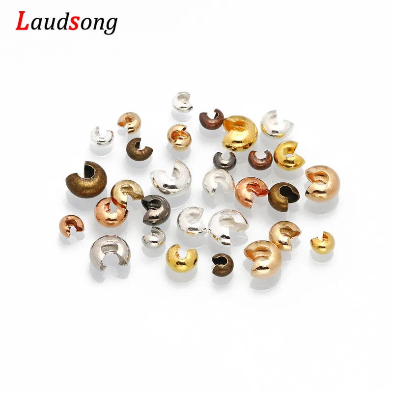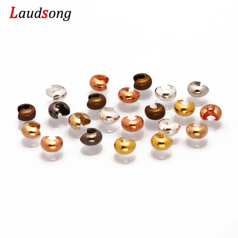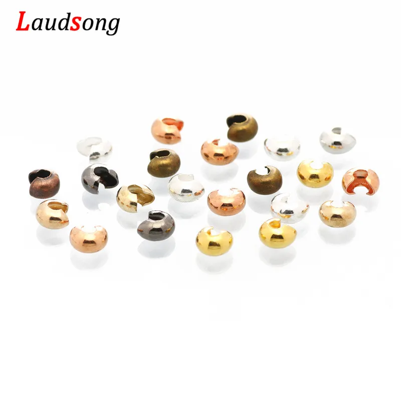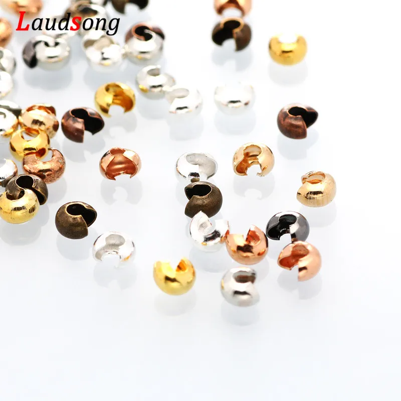 ↑100pcs/lot 3 4 5 mm Copper Round Covers Knot Open Crimp End Beads Stopper Spacer Beads For DIY Jewelry Making Findings Supplies - TopDealBox