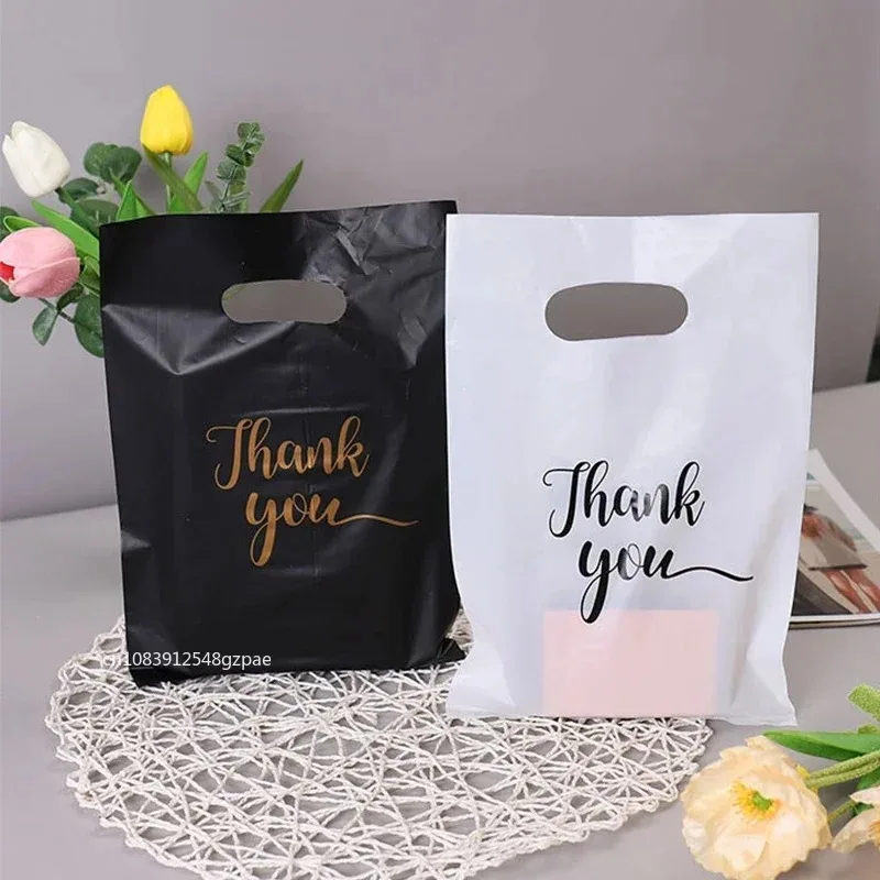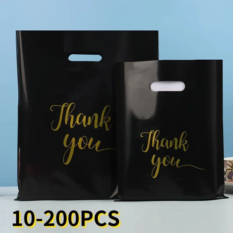 ↑10/50/100PCS Black Thank You Bag Plastic Handheld Thank You Gift Packaging Anniversary Christmas Birthday Wedding Party - TopDealBox