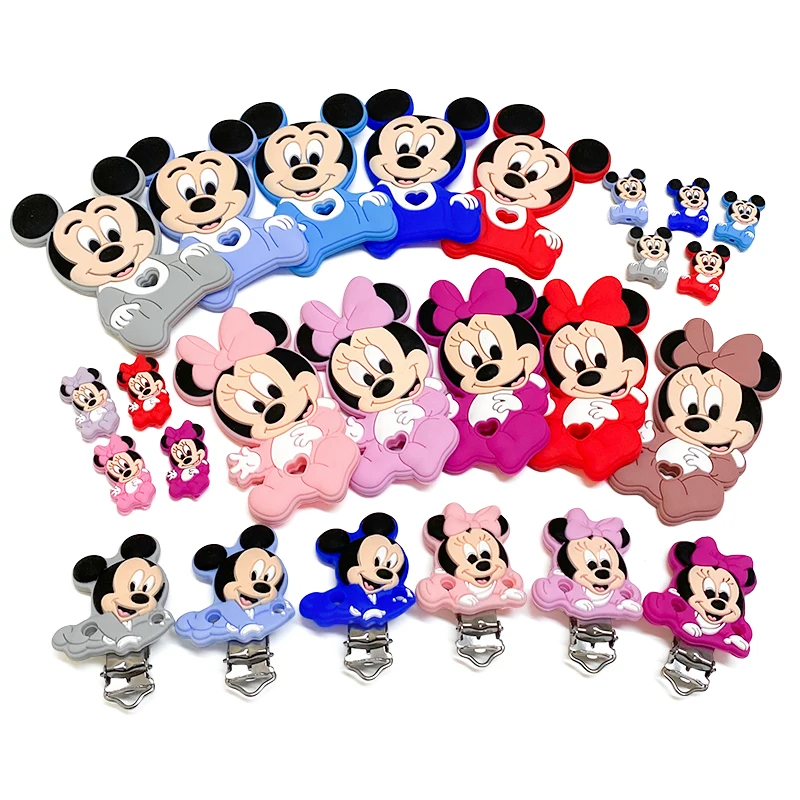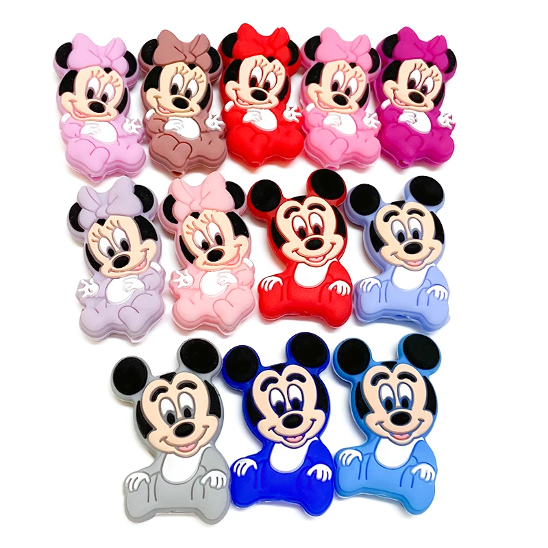 ↑1/3/10pcs New Silicone Cartoon Mickey Minnie Beads Teether Food-Grade Chewing Teeth Bead DIY Nipple Chain Jewelry Accessories - TopDealBox