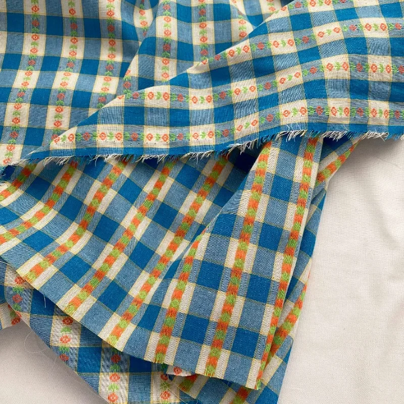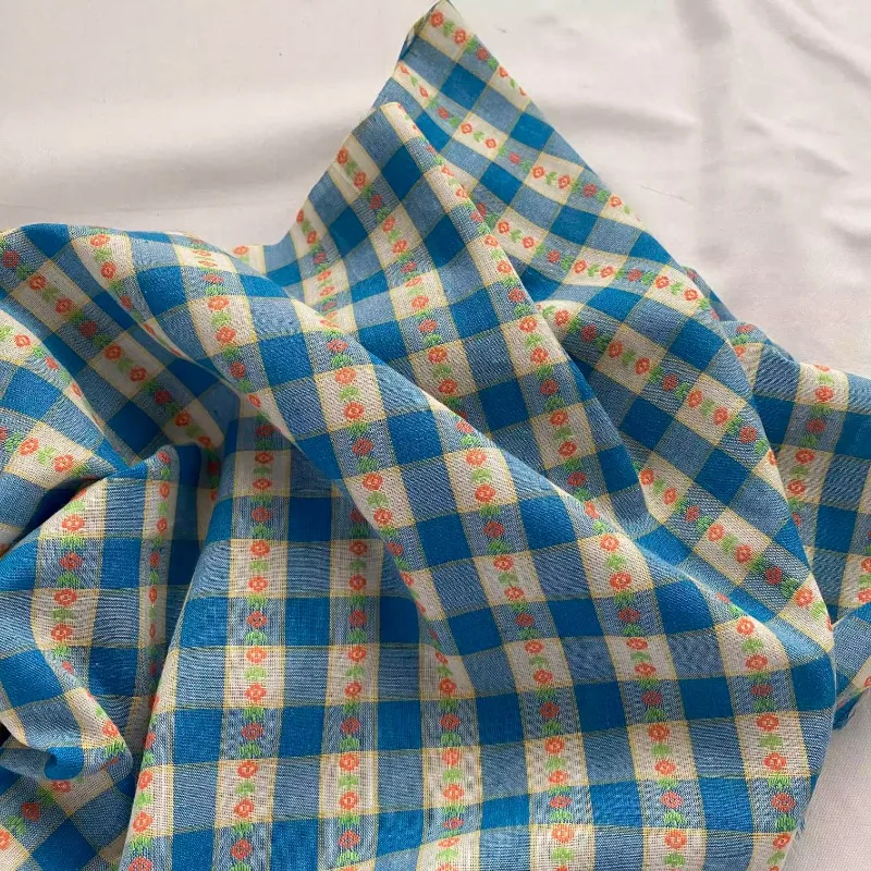 ↑145x50cm Small Fresh Blue and White Plaid Exquisite Weaving and Embroidery Small Flower Cotton Clothing Fabric DIY Sewing Cloth - TopDealBox