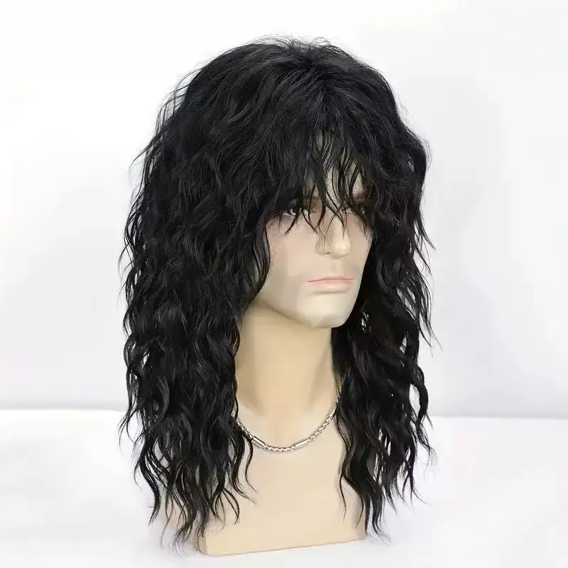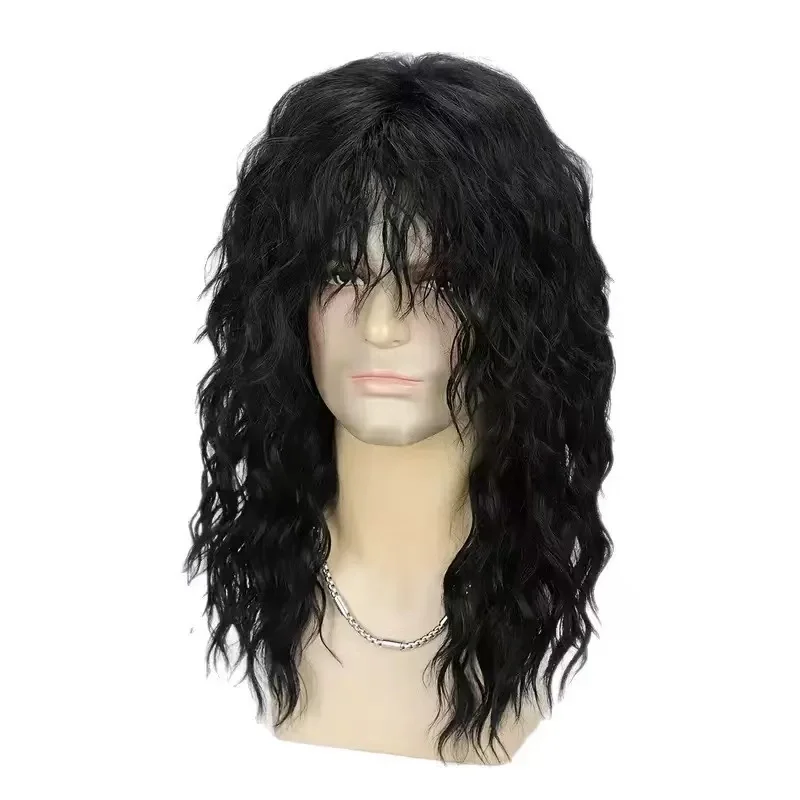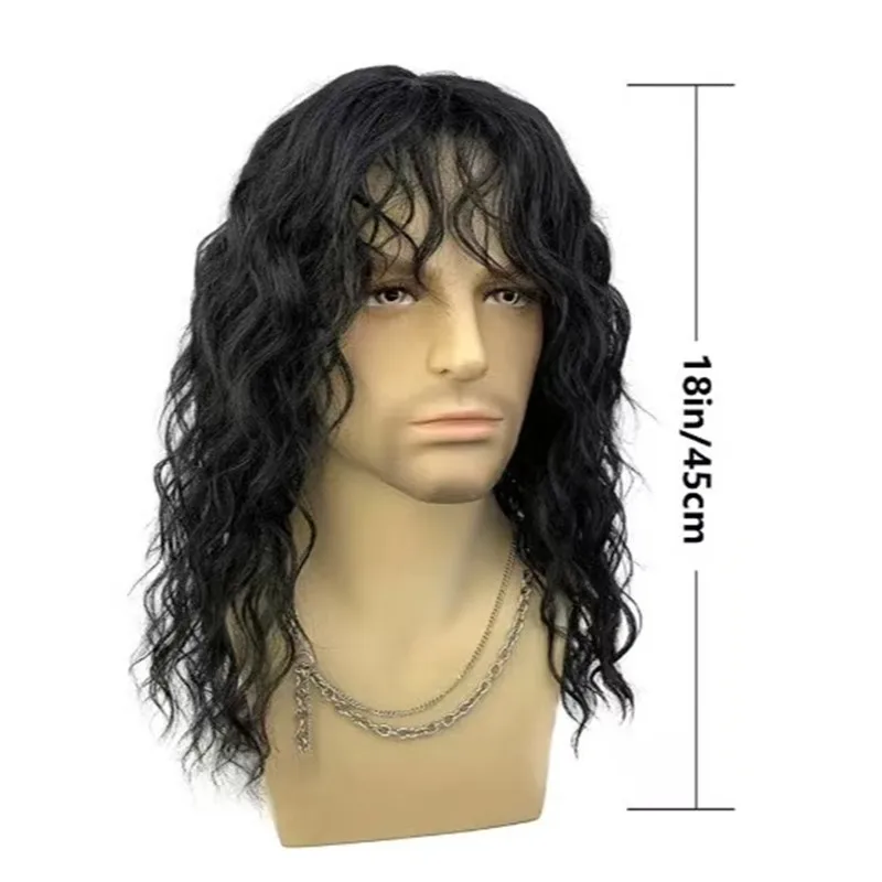 ↑18 Inch Synthetic Rock Wig Men/Women Black White Bangs Long Wavy Curly Wig Party or Halloween Wig - TopDealBox