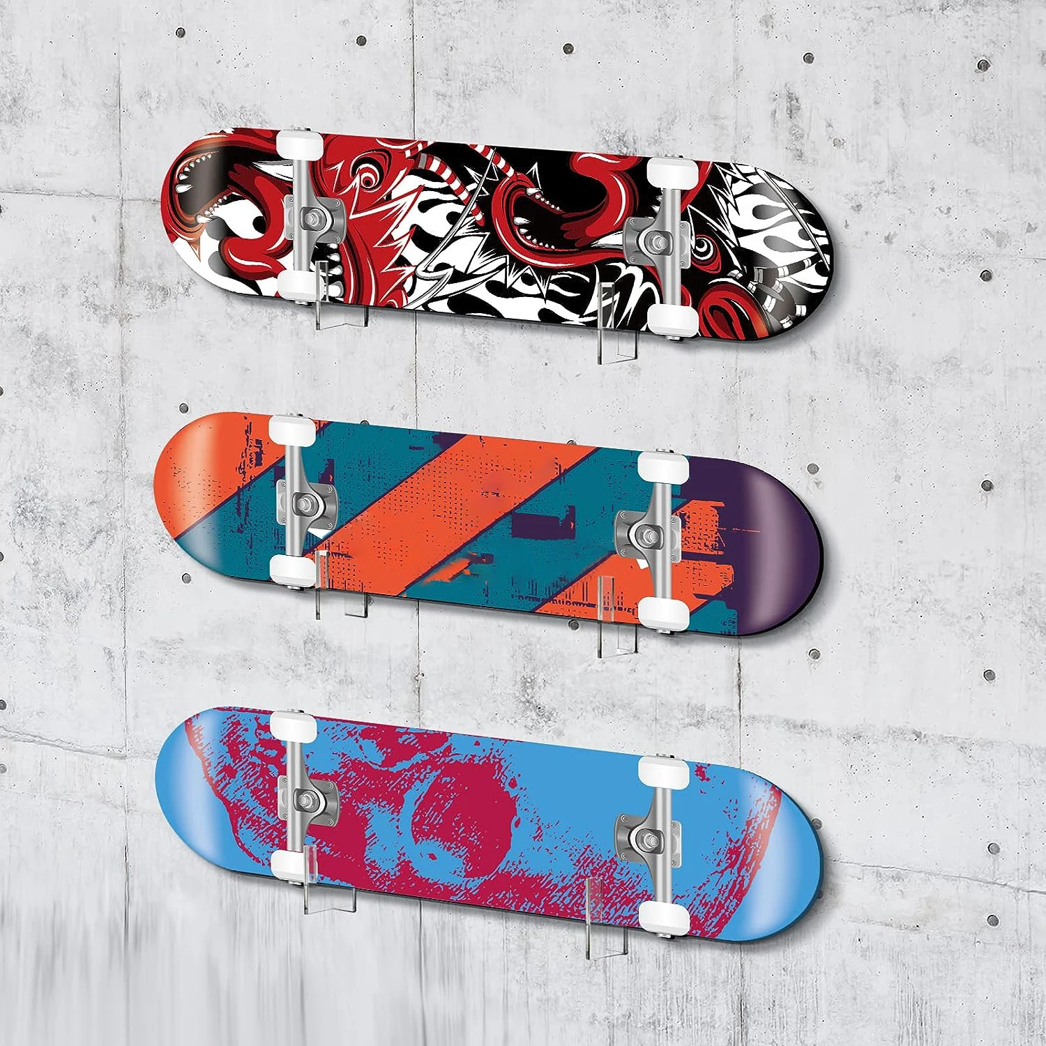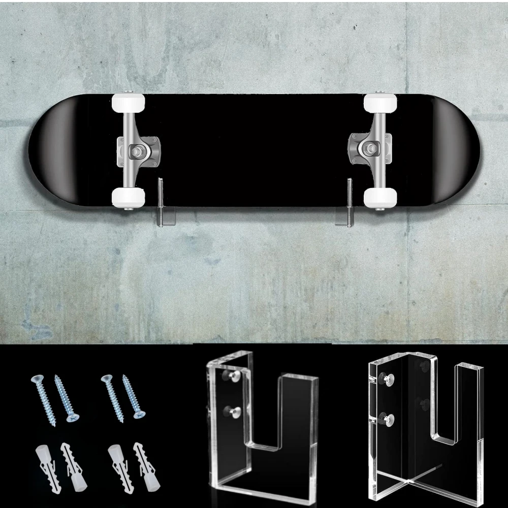 ↑2 Pairs Skateboard Display Rack Acrylic Wall Stand Fixed Holder Skateboards Storage Holder - TopDealBox