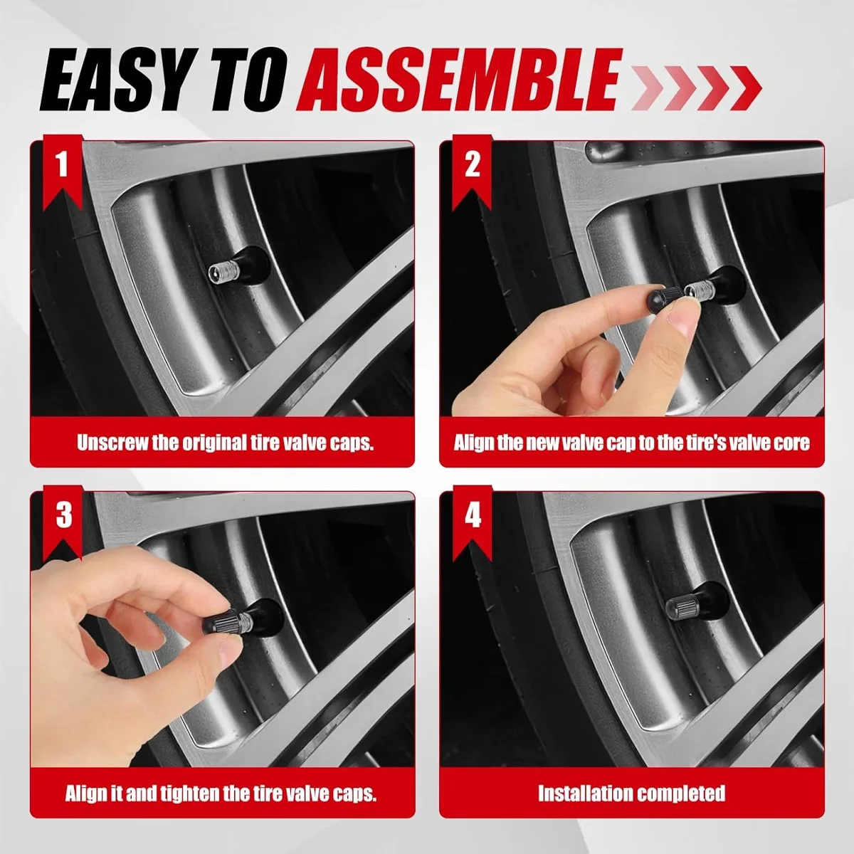 ↑Car Tire Valve Stem Caps Universal Plastic Tire Valve Caps With O Rubber Ring Car Tire Valve Plastic Black Tire Valve Cover - TopDealBox