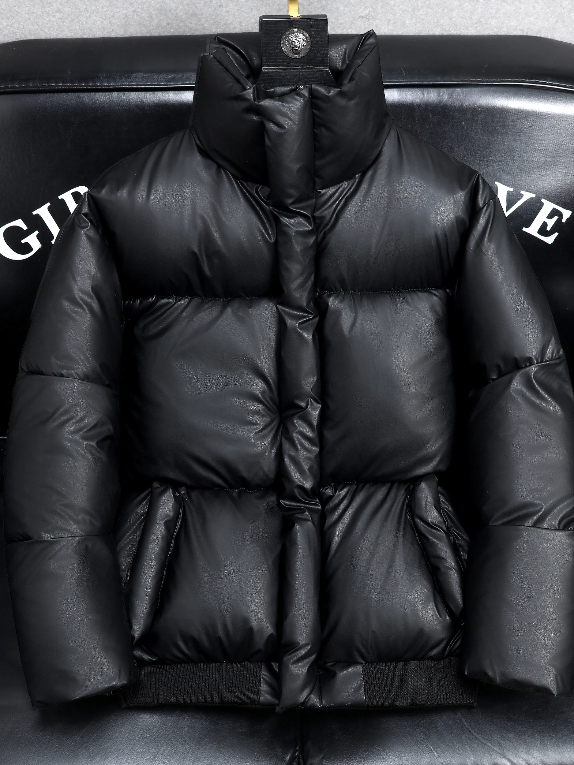 ↑2025 Winter Men's Thiened down Cotton Jaet Warmth Anti-Cold PU Leather Cotton Clothes Youth Faion Urban Sle Long Sve - TopDealBox