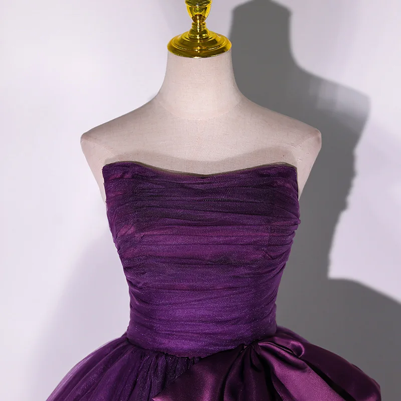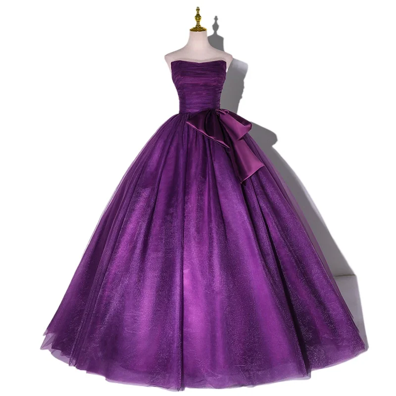 ↑2026 New Women's Butterfly Knot Decorative Mesh Banquet Strapless Evening Dress Fashionable Slimming Back Strap Big Swing Dress - TopDealBox