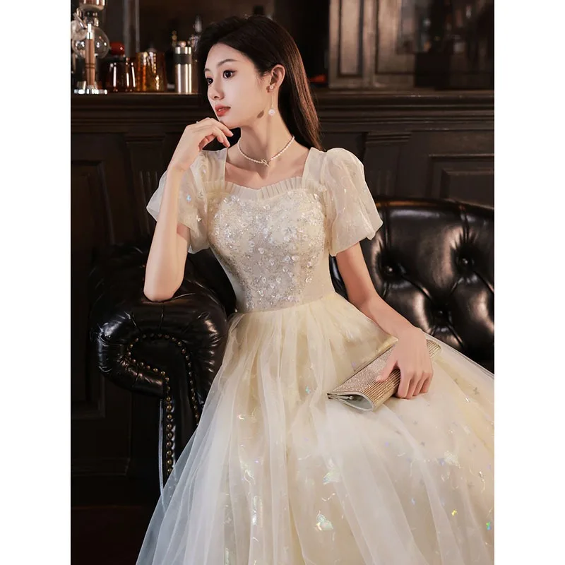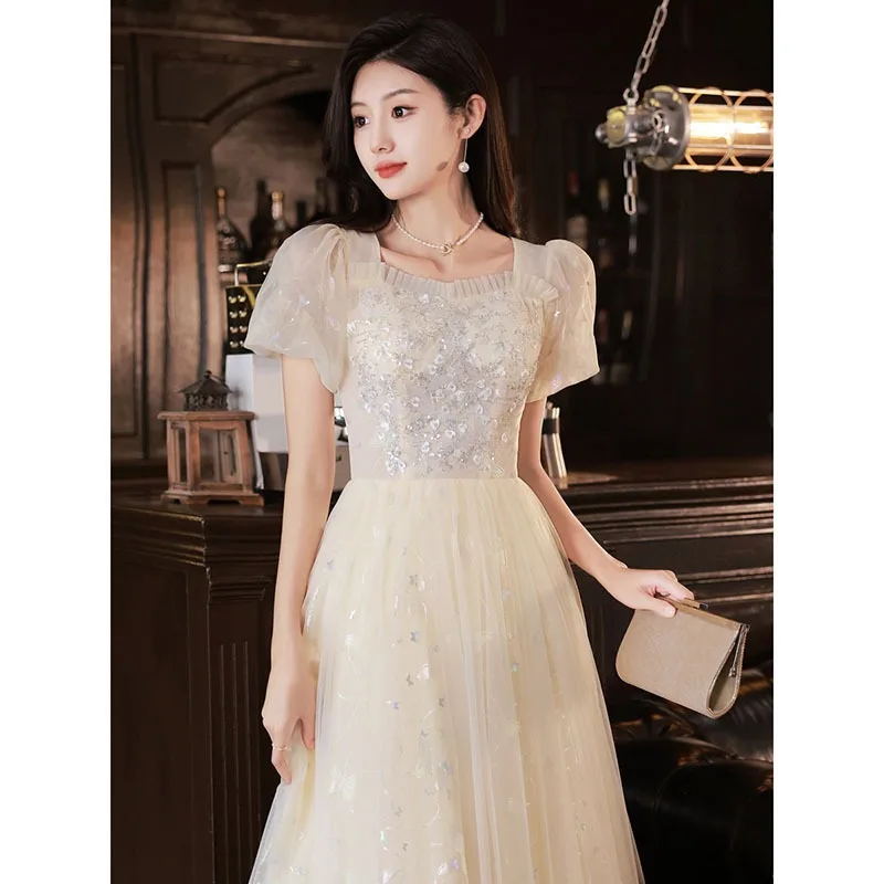 β‘Quick viewSummer New Champagne Women's Square Collar Evening Dress Fashion Grand Banquet Bridesmaid Dress Student Performance Long Dress2404.57 UAHHot