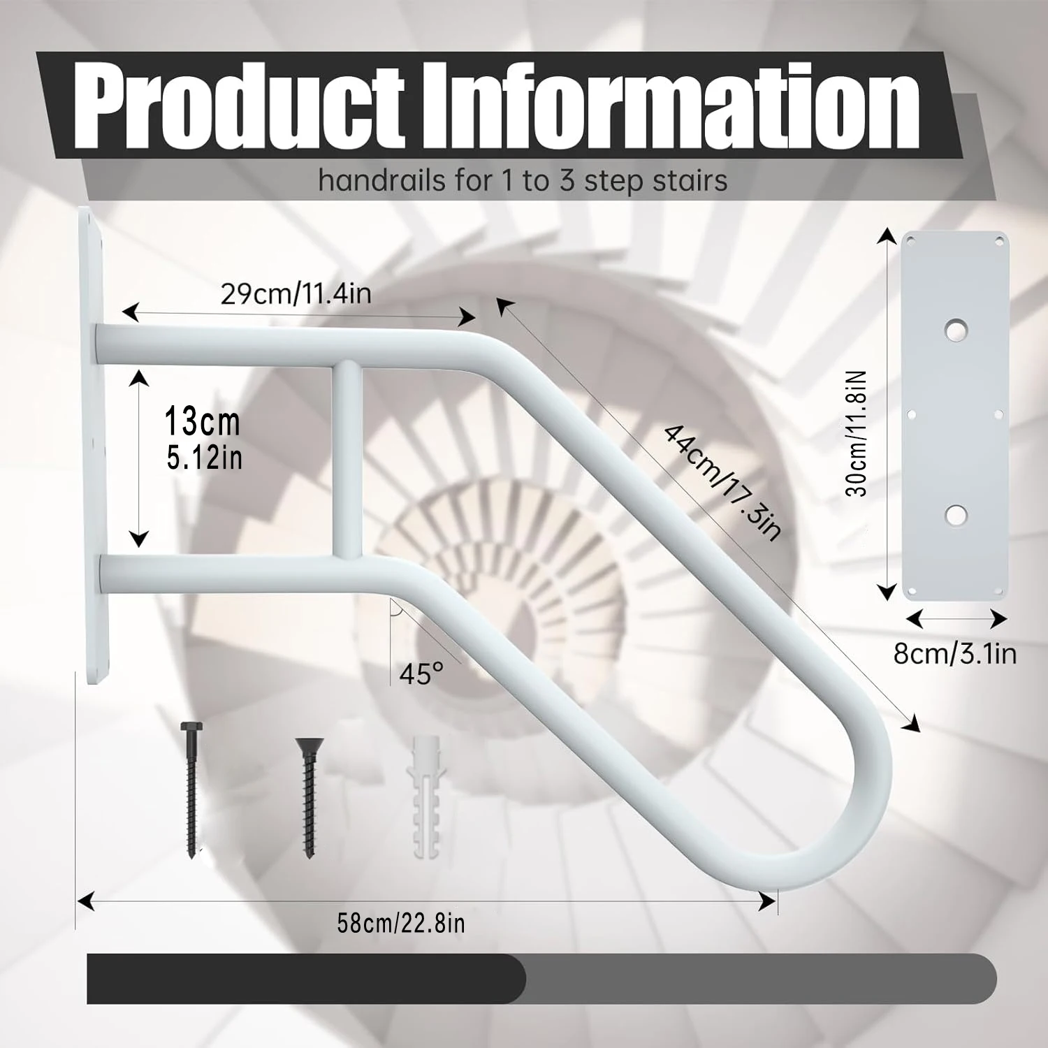 ♡Quick view2pc Upgraded white safety handrail for stairs, suitable for 1-3 steps, including curved outdoor step handrails, wall mounted U-s3734.53 UAHHot