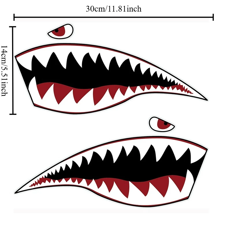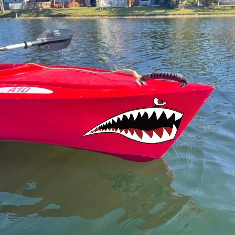 ↑2PCS Shark Teeth Mouth Modification Boat Stickers Waterproof for DIY Kayak Fishing Canoe Car Truck Sunscreen Vinyl Decals Decor - TopDealBox