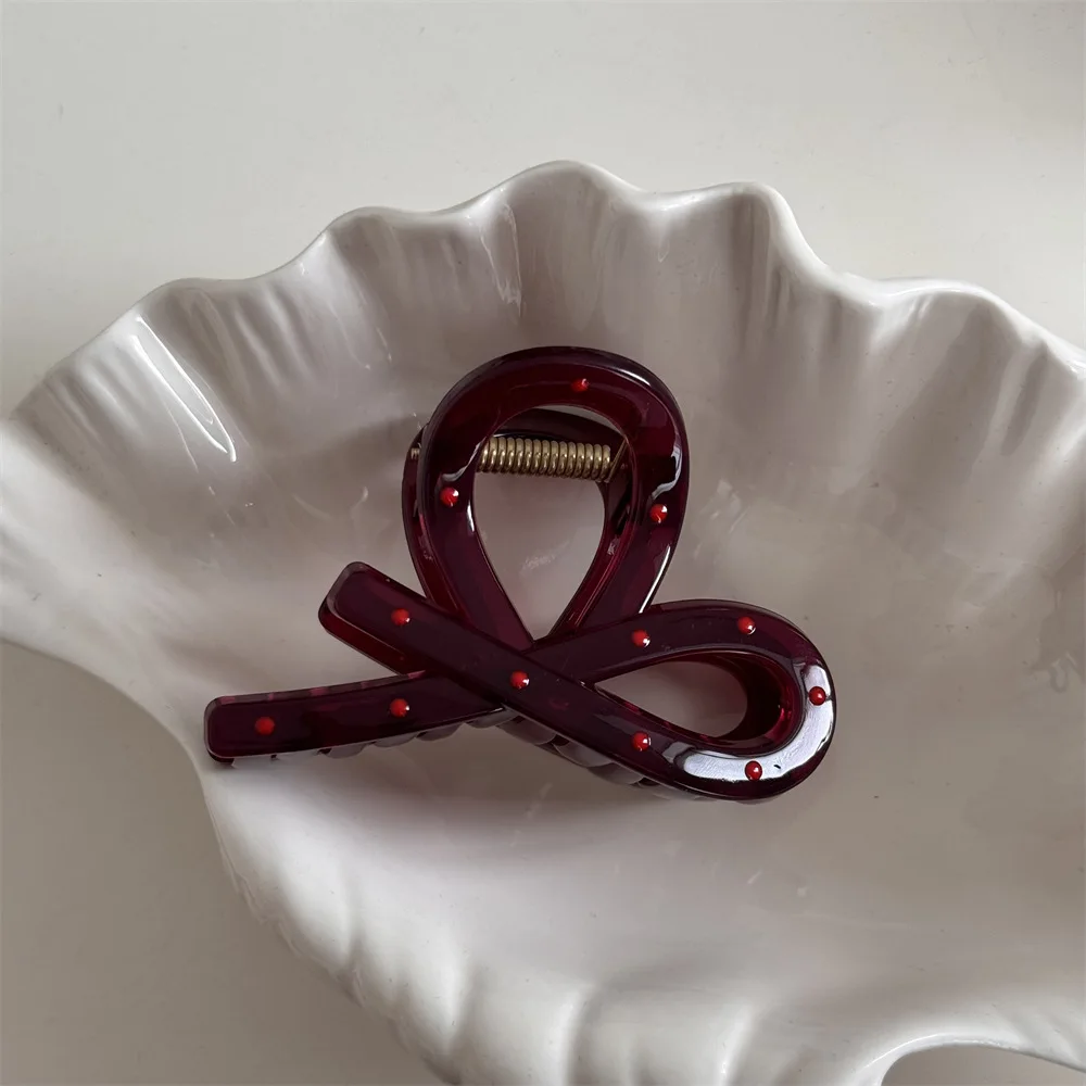 ↑2pcs Vintage Red Polka Dot Ribbon Bow Shark Clip Hairpin Women's Elegant Hair Accessories Crab Barrettes Gift - TopDealBox