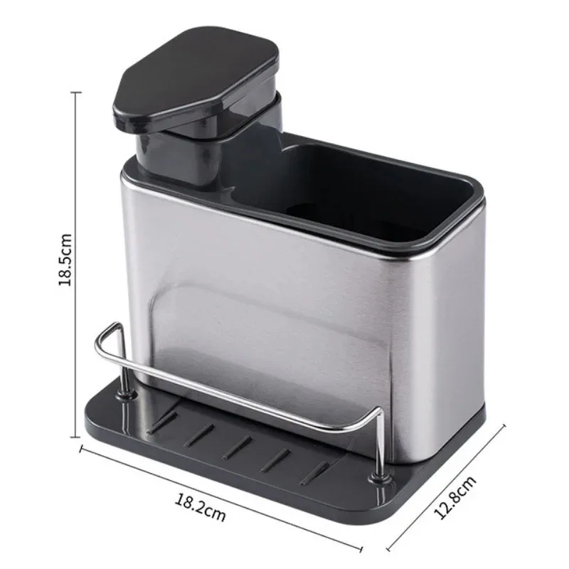 ↑3-in-1 Kitchen Stainless Steel Tableware Soap Dispenser, Sponge Holder, Sink Organizer Drain Rack, Suitable for Kitchen Sinks - TopDealBox