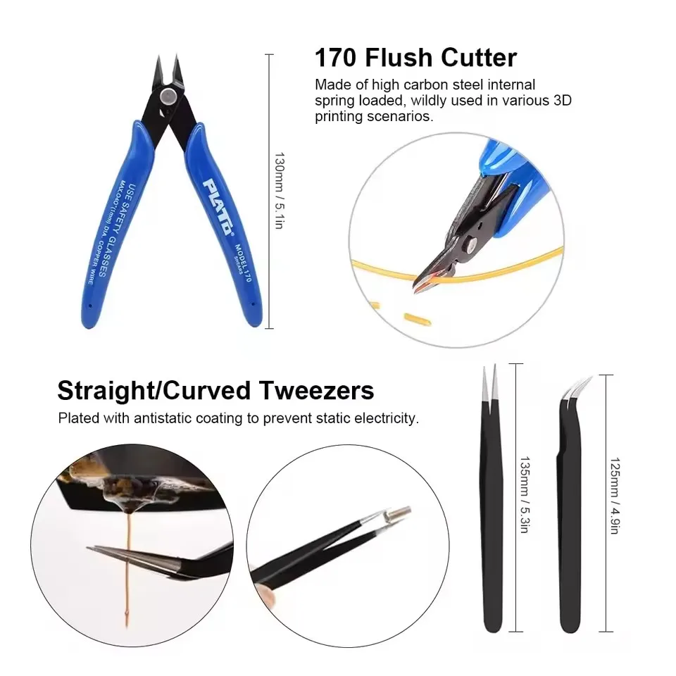 ↑3D Printer Tool Kit for FDM/SLA – Nozzle Cleaner, Scraper, Tweezers, File & Engraving Tools for Maintenance - TopDealBox