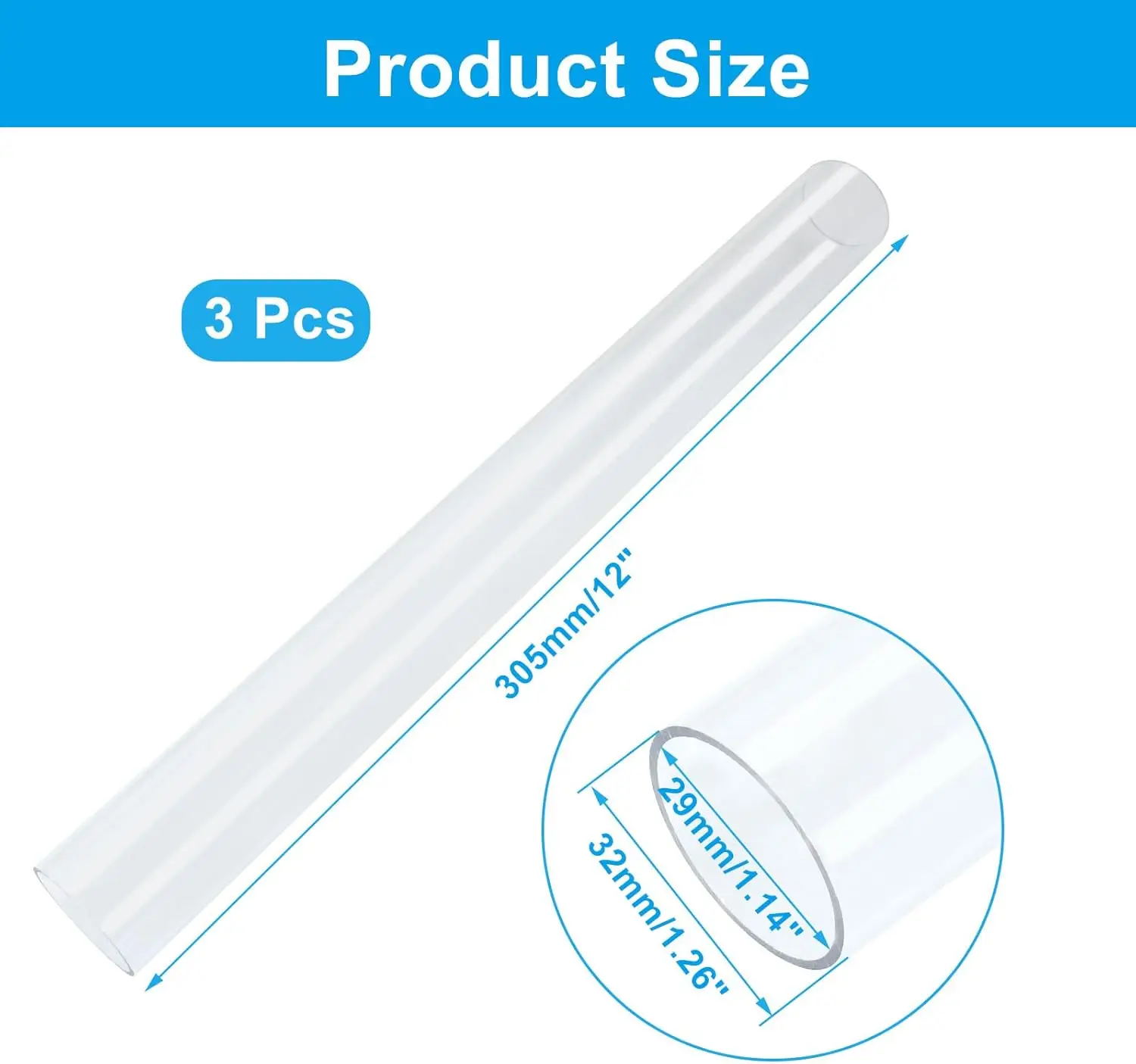 ↑3Pcs 29 mm ID x 32 mm OD x 12 Inch (305 mm) Length Round Clear Rigid Tubing,Plastic Polycarbonate Tube - TopDealBox