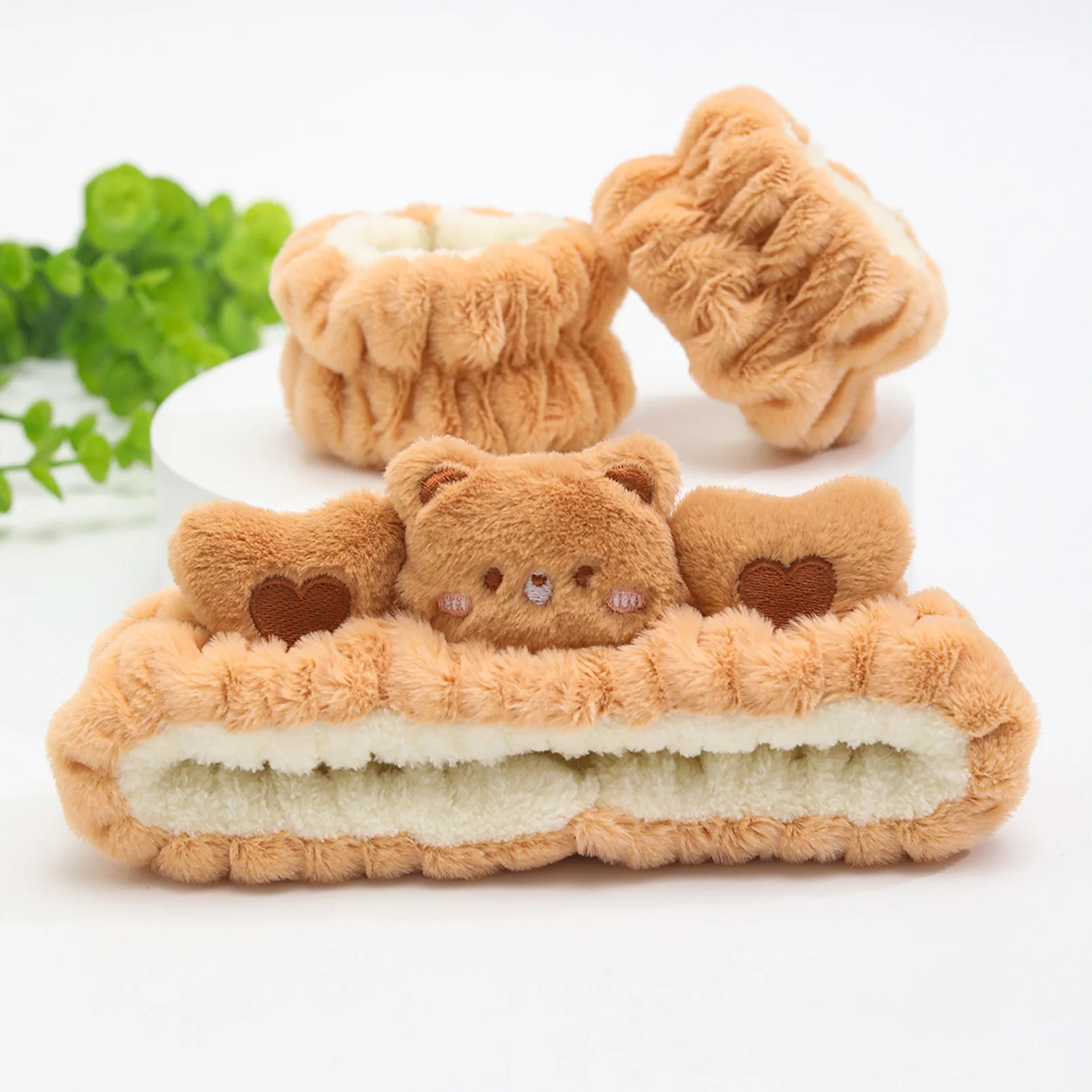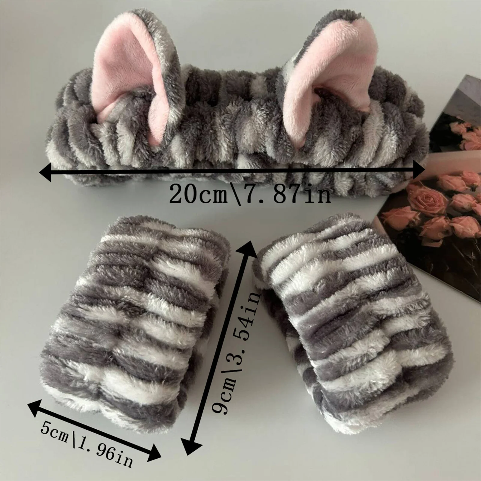 ↑3pcs Wash Face Headband Soft Comfortable Plush Headband Wrist Strap Set For Girls Cartoon Cat Ear Shaped Wash Up Headband Kit - TopDealBox