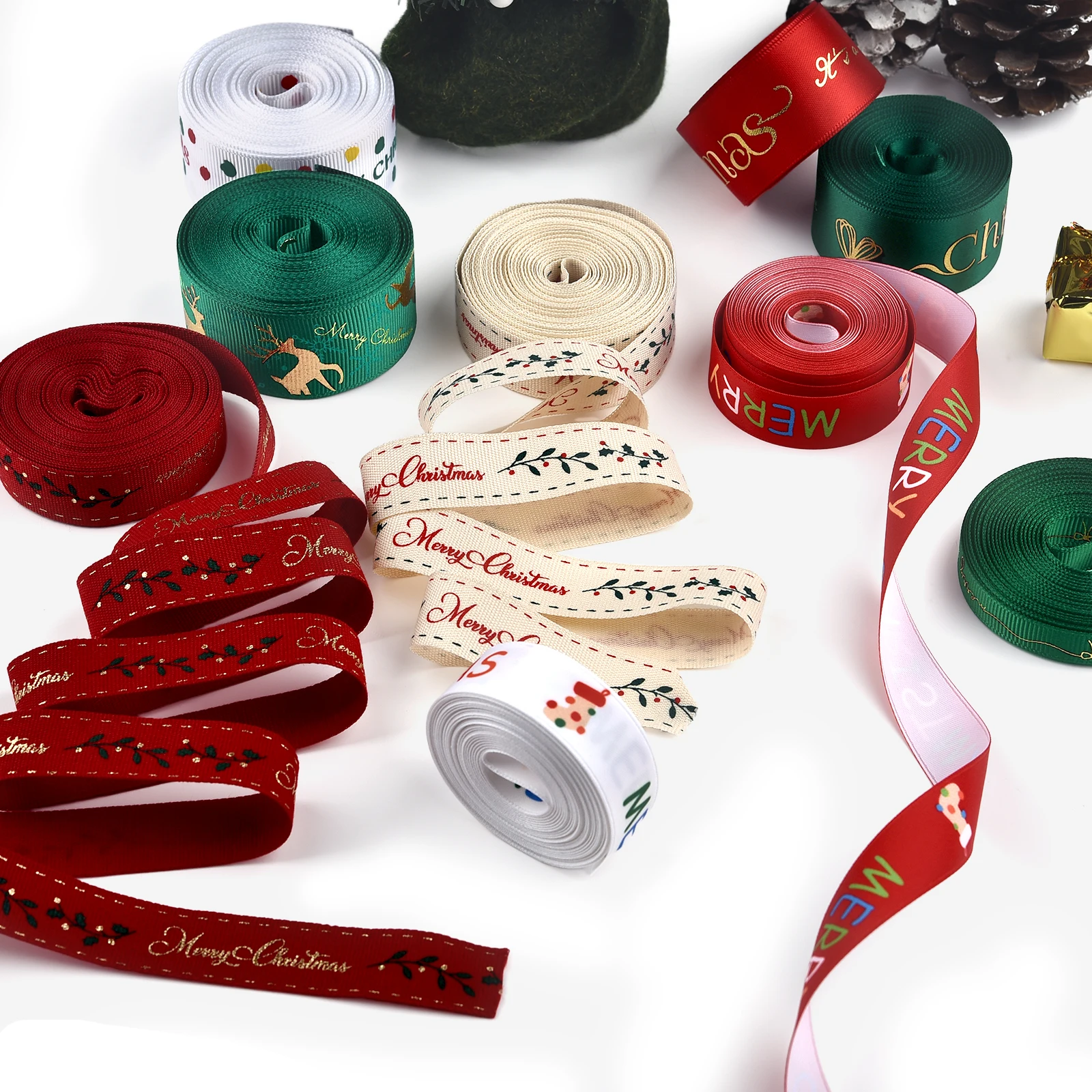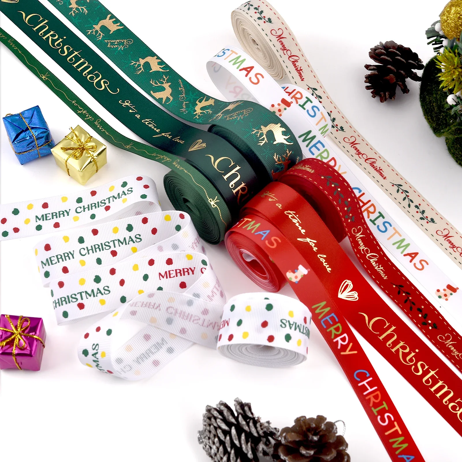 ↑4.5M Christmas Ribbon Printed Christmas Polyester Ribbon For Handmade Design Christma Decoration DIY Cake Bouquet Gift Packing - TopDealBox