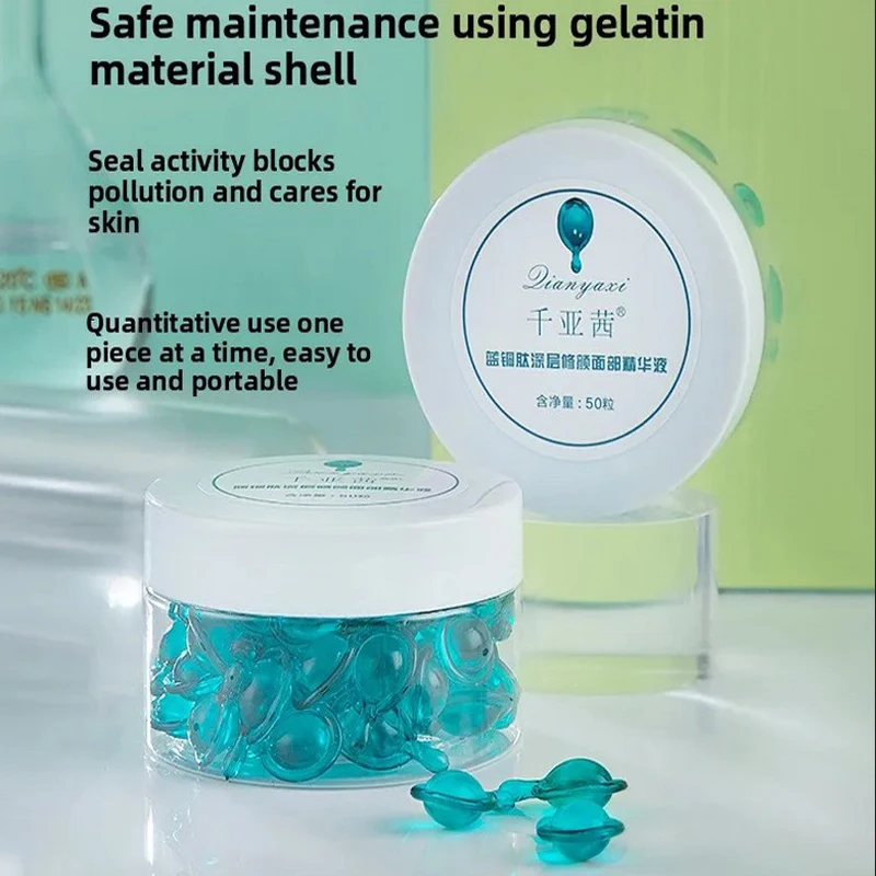 ↑50PCS Blue Copper Peptide Capsule Face Serum Firms Tightens Night Moisturizing Plumping and Radiant Skin Care Rejuvenation - TopDealBox