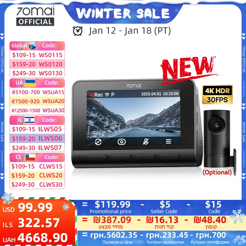 β‘Quick viewNew 70mai 4K Dash Cam A810S HDR Supercapacitor 4G LTE Wi-Fi 6 Voice Control GPS ADAS 70mai A810S Upgrade Version of 70mai A8105838.24 UAHHotβ β β β β β 4.7