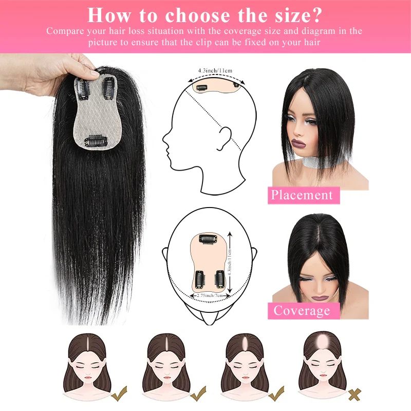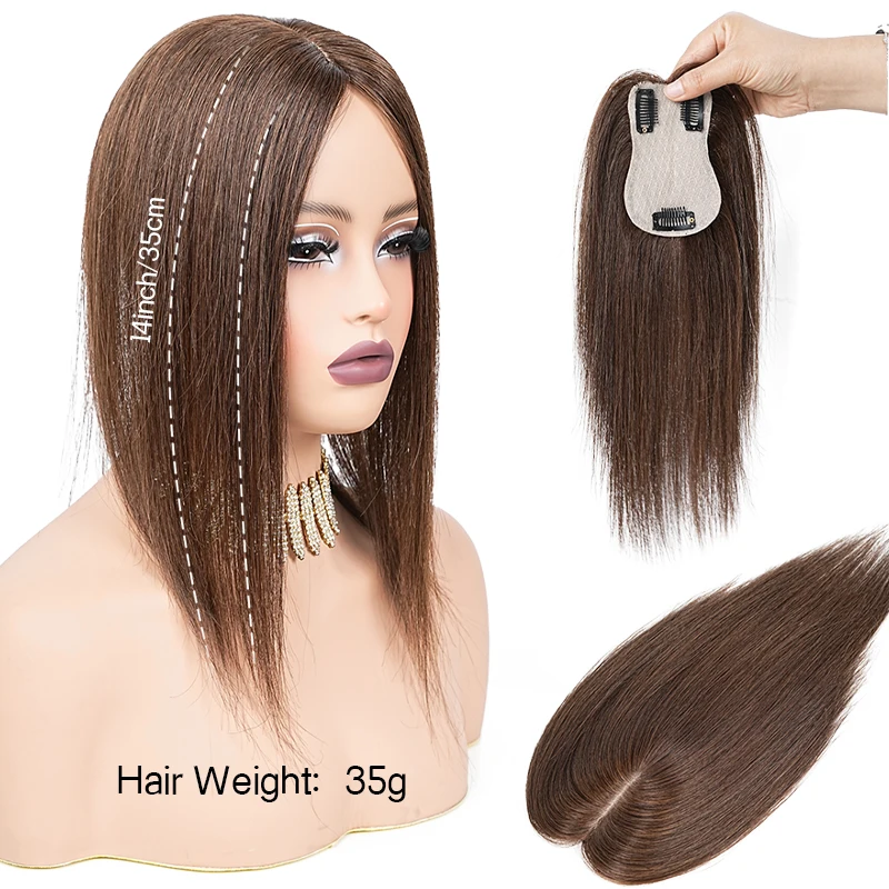 β‘Quick view25cm 3.54*4 Inch Hairnet Human Hair Swiss Lace Pieces Clip in Hair Topper Extension with Bangs Black Dark Brown Top Wig Piece844.41 UAHHotβ β β β β 5.0