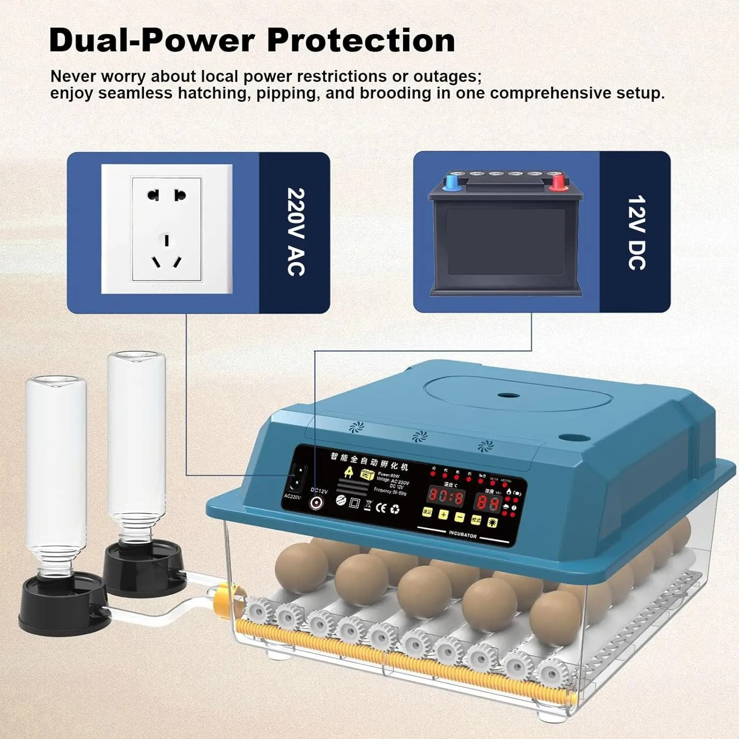↑9 To 12Eggs Incubator Brooder Automatic Turning Automatic Water Bird Quail Chick Incubator Poultry Incubator Farm Hatchery Tool - TopDealBox