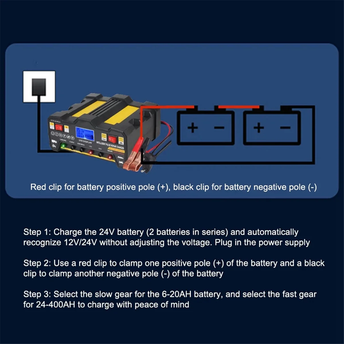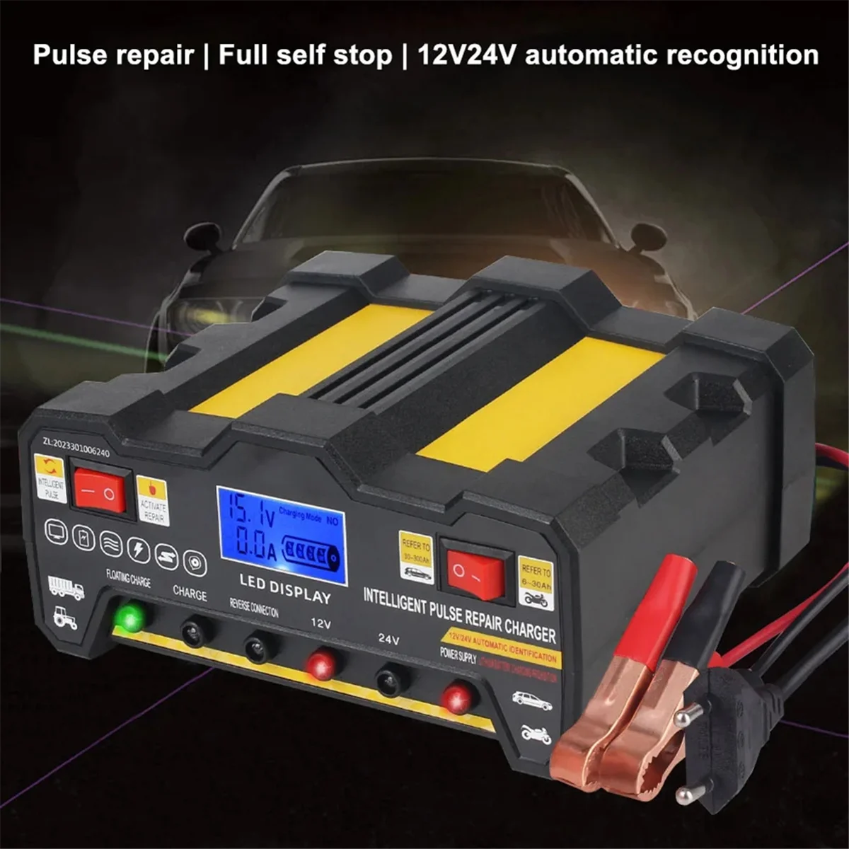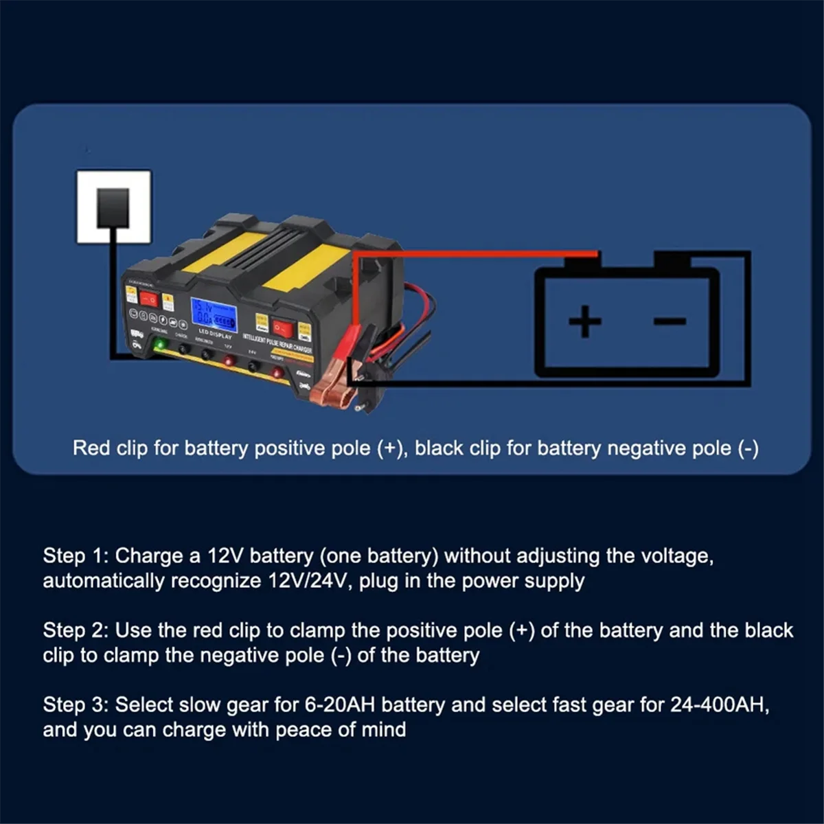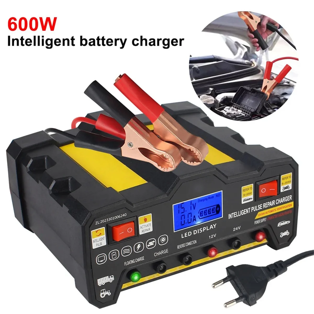 ↑A002 Intelligent Pulse Repair Battery Charger 300AH LCD for Wet Dry Lead Acid Full Automatic Car Battery Charger EU-Plug - TopDealBox