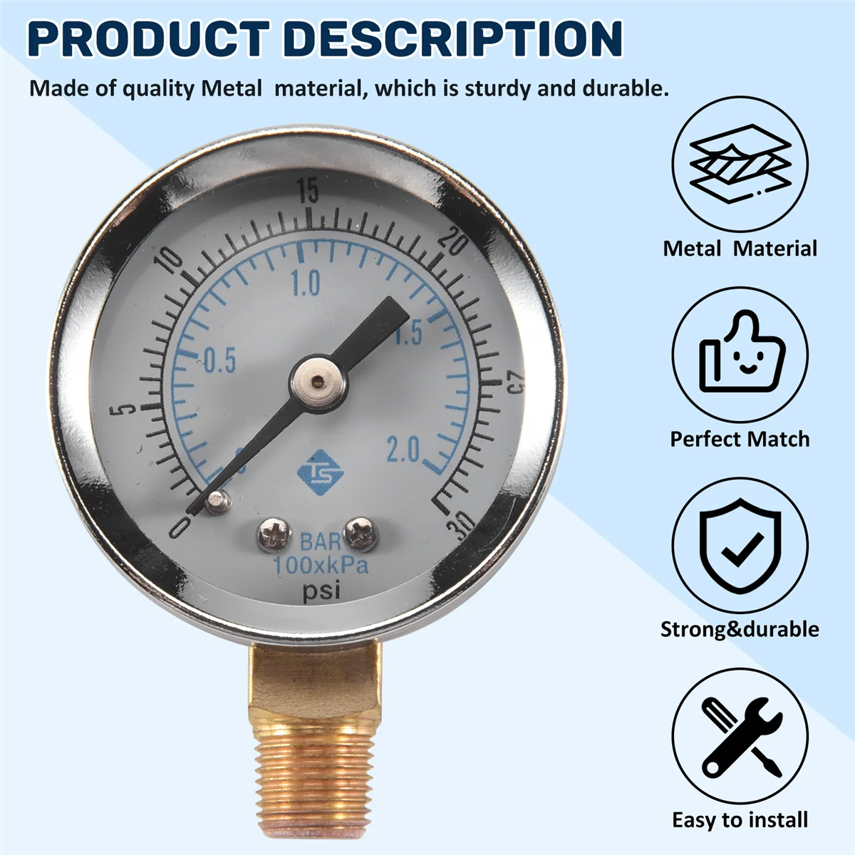 ↑A06K Pressure Gauge - 0 - 30 psi 0 - 2 bar Mini Dial gauge compressor meters hydraulic pressure gauge Gage double scale Black - TopDealBox