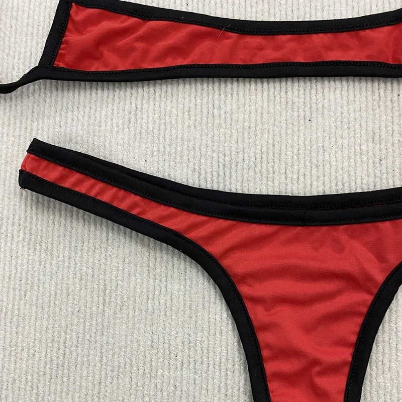 ↑Aesthetic Sexy Spice Girl Beach Contrast Color Swimsuit Solid Shoulder Strap Adjustable Backless Simple Summer Split Bikini Y2K - TopDealBox