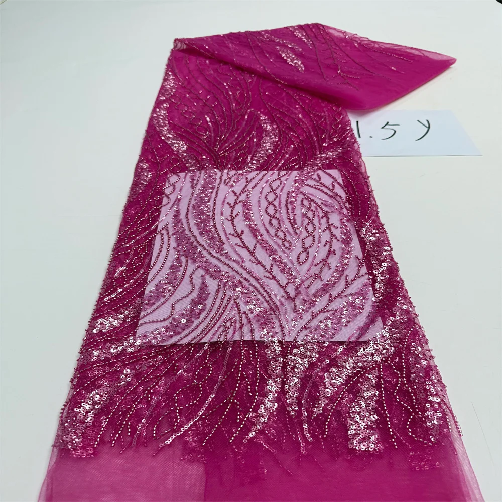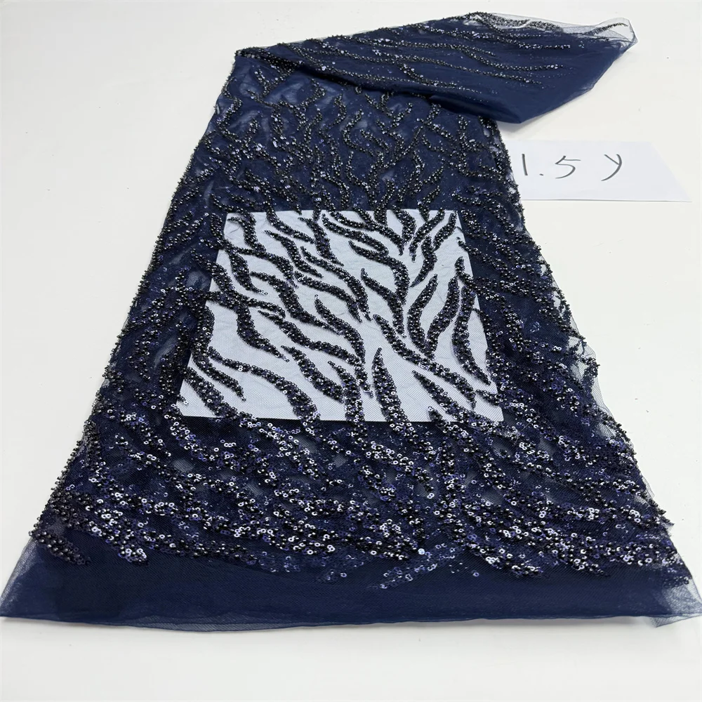 ↑African Sequins Beaded Lace Fabrics High Quality Embroidery French Nigerian Lace Fabric For Wedding Sewing Material 1.5 yards - TopDealBox