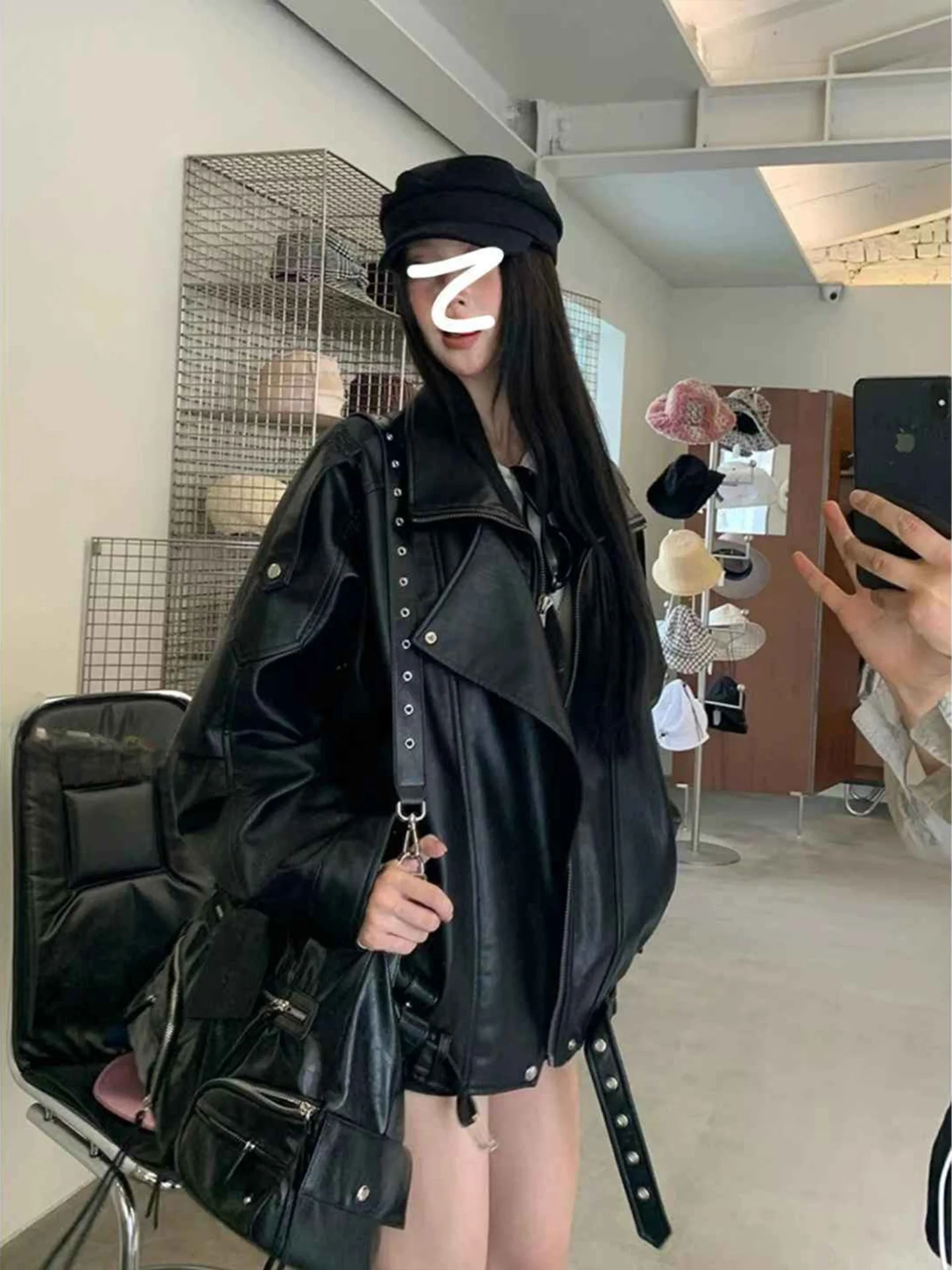 β‘Quick viewLoose Fit Bla PU Leather Jaet Women's Spring Autumn Faion Street Sle Retro Design Long Sve Suit Coat785.03 UAHHotβ β β β β 4.0