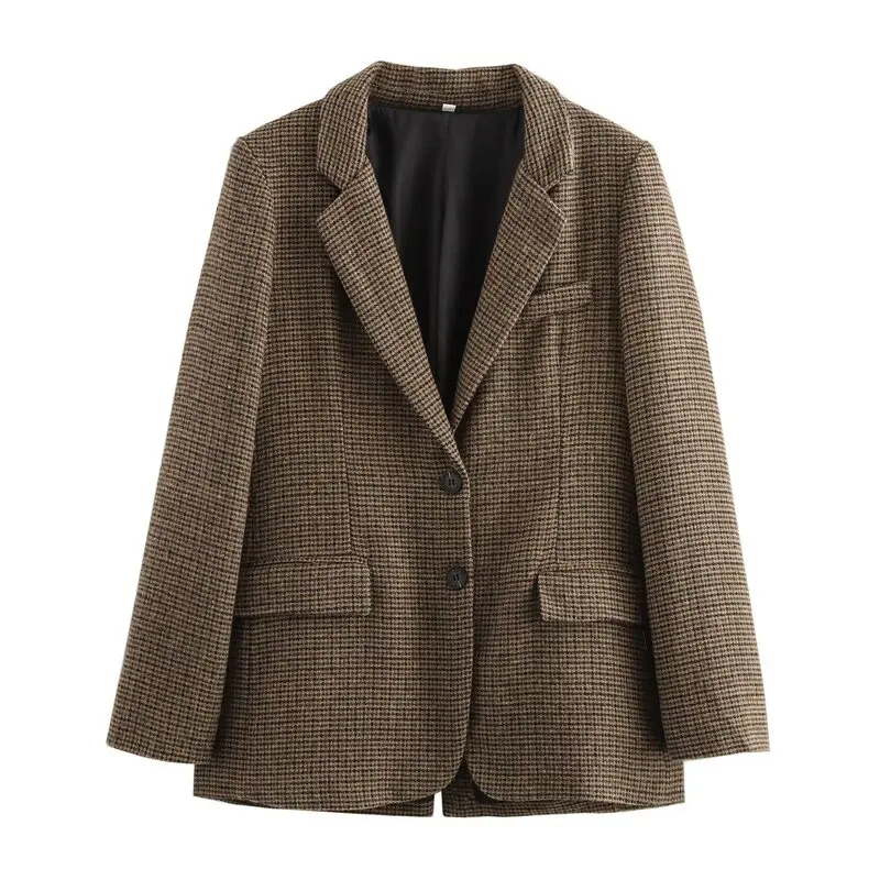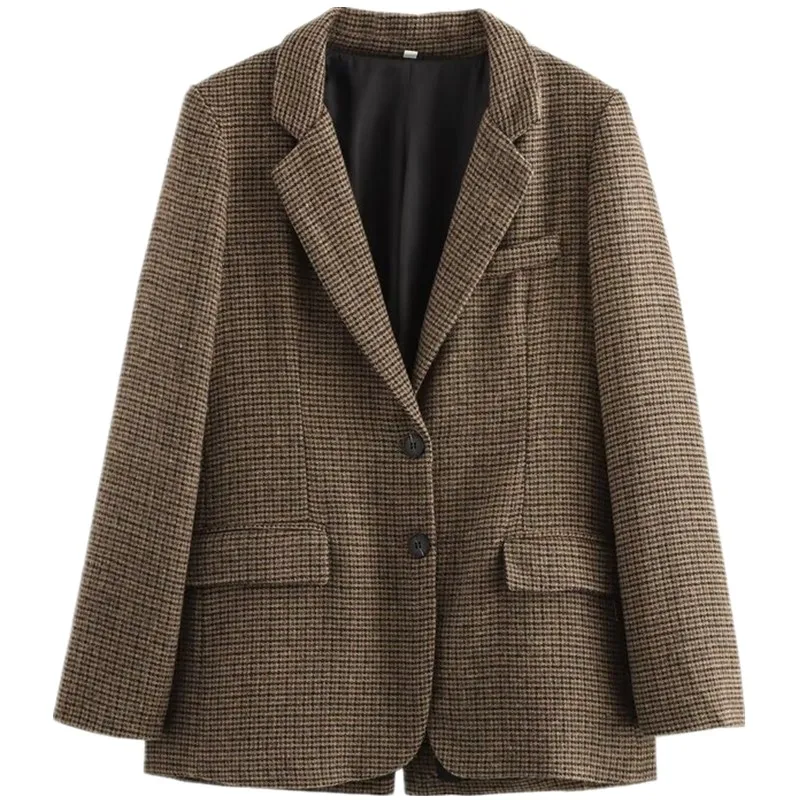 ↑Autumn Winter Plaid Mixed Fabric Women's Suit Jaet Versatile Design New Arrival Faionable Commute Sle Long Sve - TopDealBox