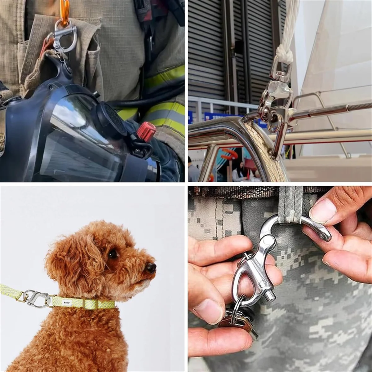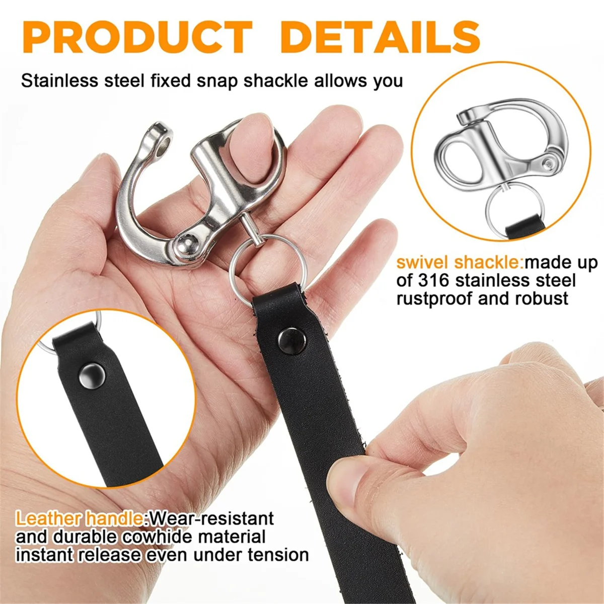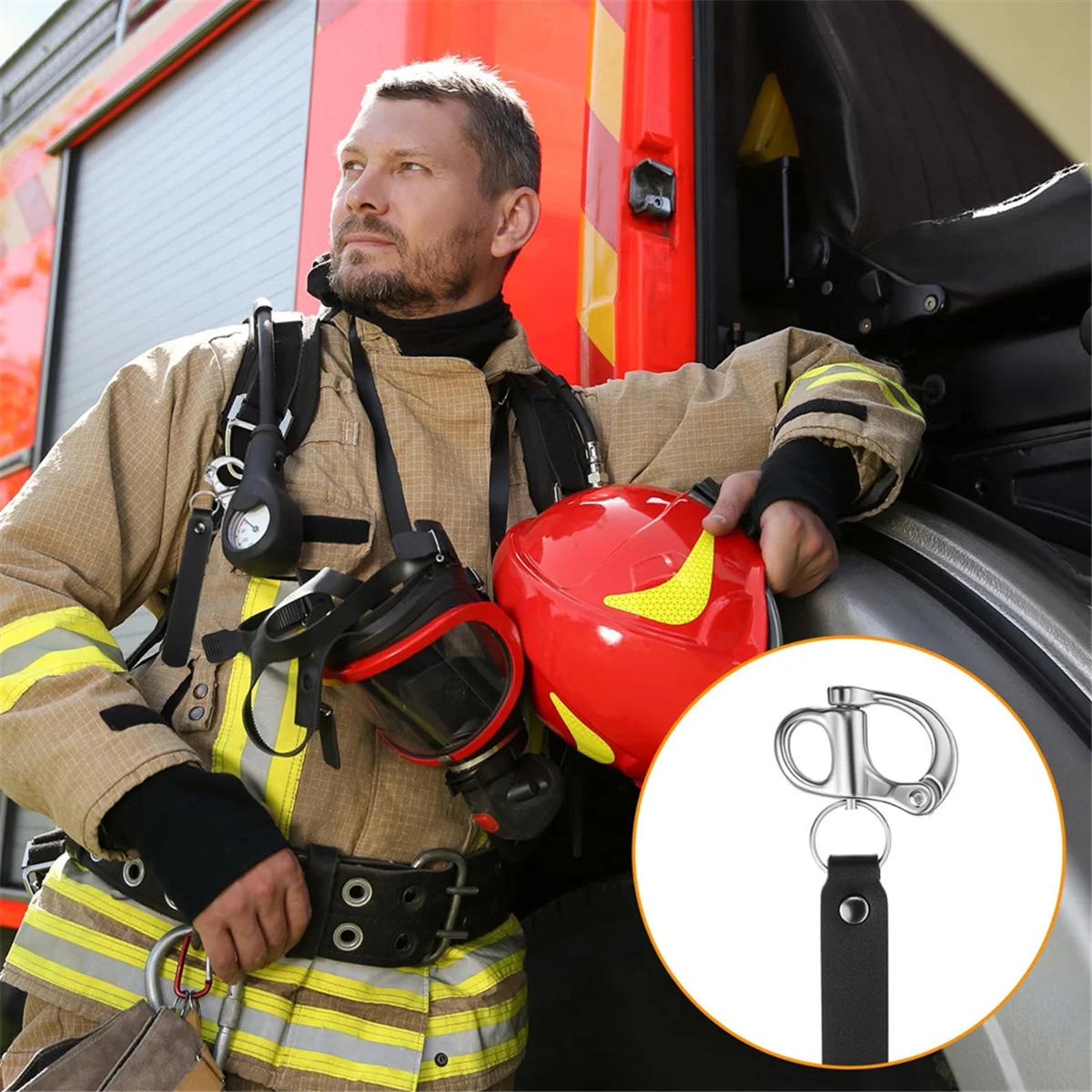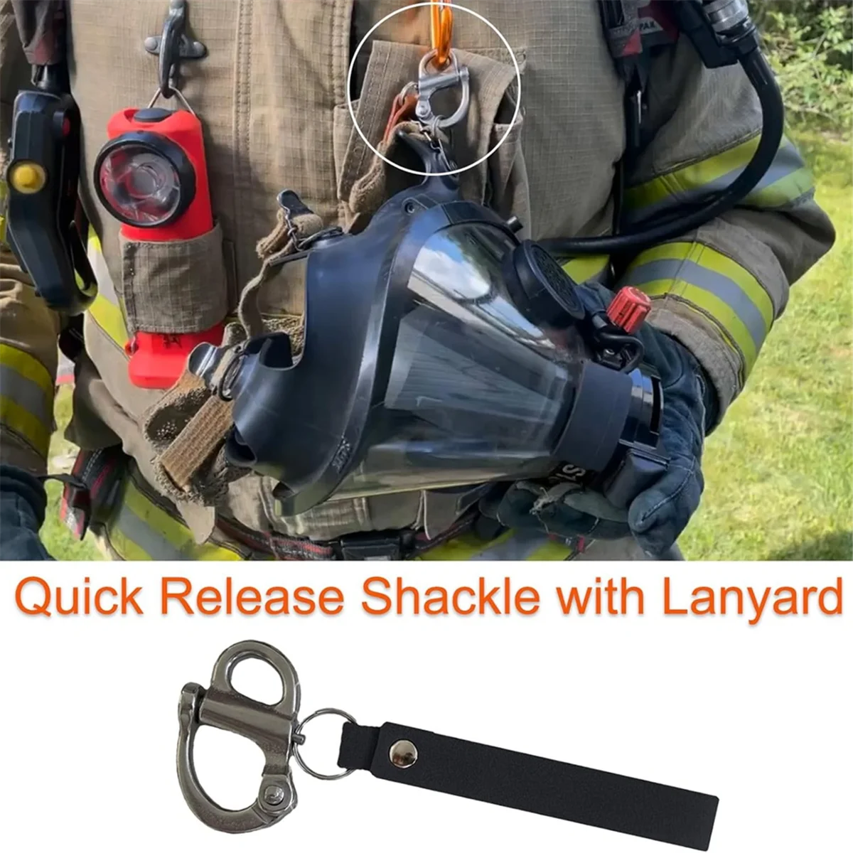 ↑BABQ 2pack Mask Quick Release Shackle with Leather Handle for Firefighter, 316 Stainless Steel Fixed Snap Shackle Lanyard - TopDealBox