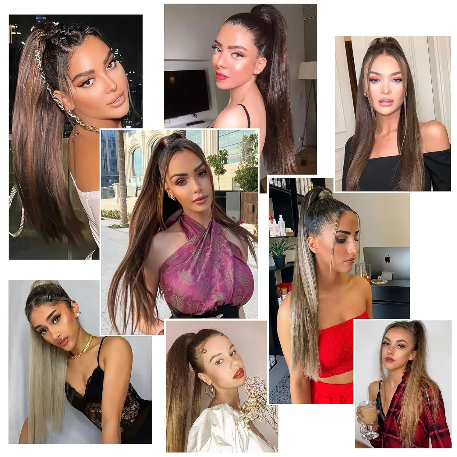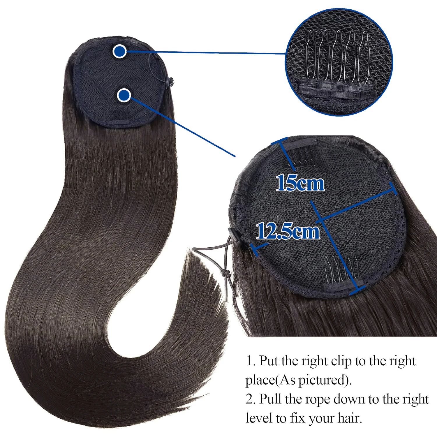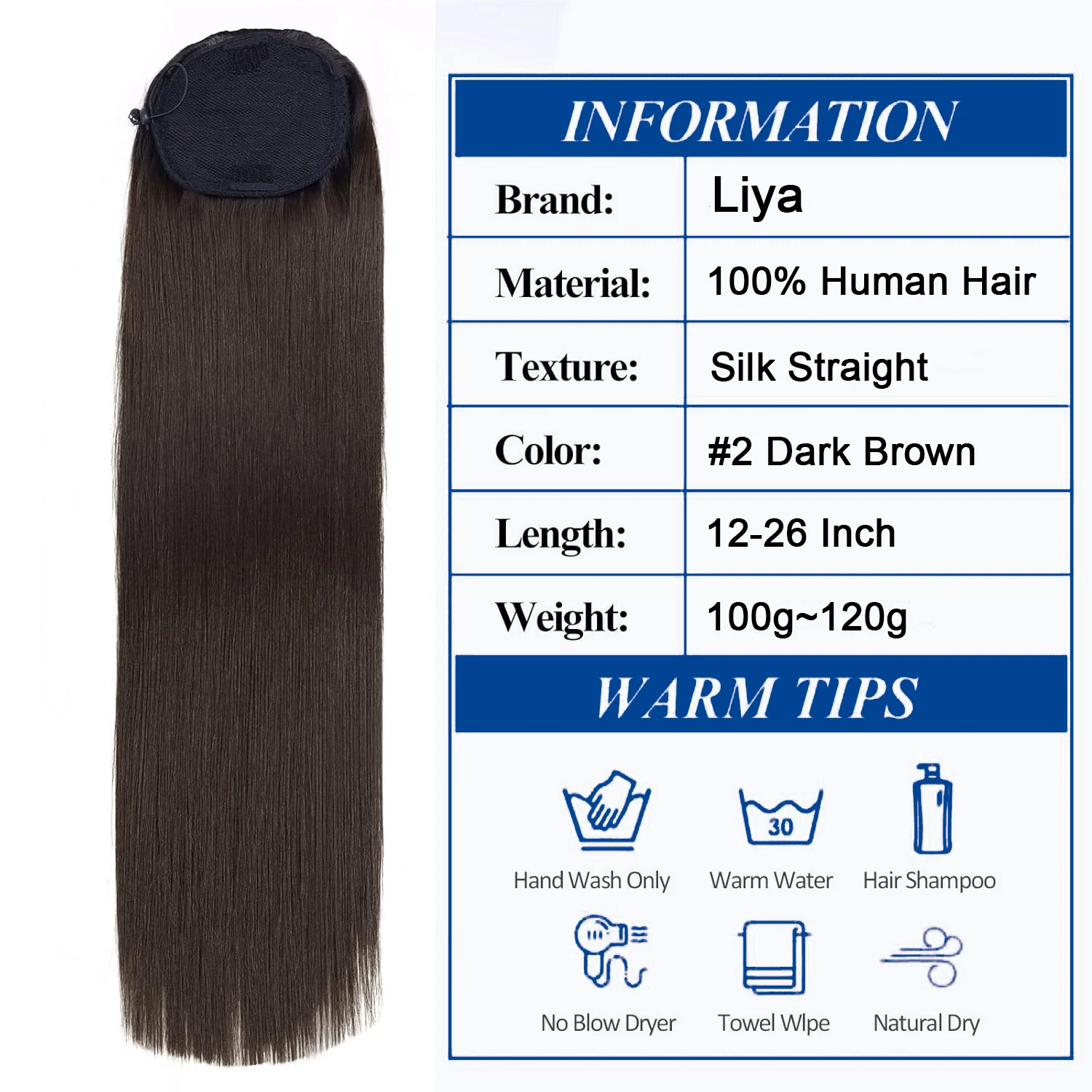 ↑Bone Straight Drawstring Ponytail Wigs Clip In Hair Extensions Dark Brown #2 Wrap Around Drawstring Ponytail 100% Human Hair - TopDealBox