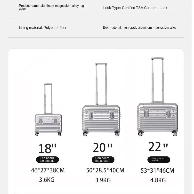 ↑Bunnyfly 18/20-Inch Aluminum Alloy Magnesium Modern Carry-On Luggage Air Approval Aluminum Trolley Portable Cabin Size Suitcase - TopDealBox