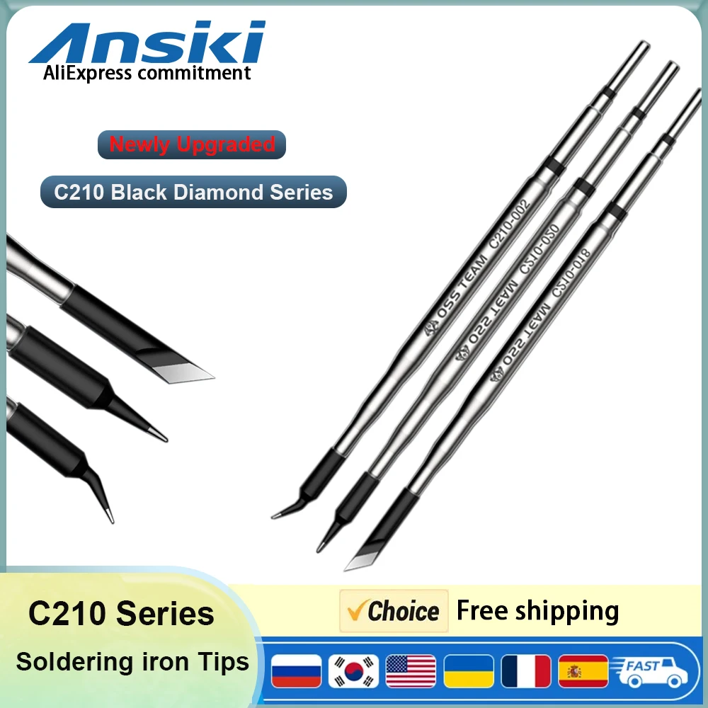 ↑C210 Soldering Tip Super Fine Black King Kong Series Suitable for T80 HS-02B GVM T210 Soldering iron Precision welding tools - TopDealBox