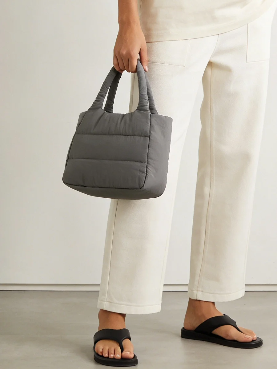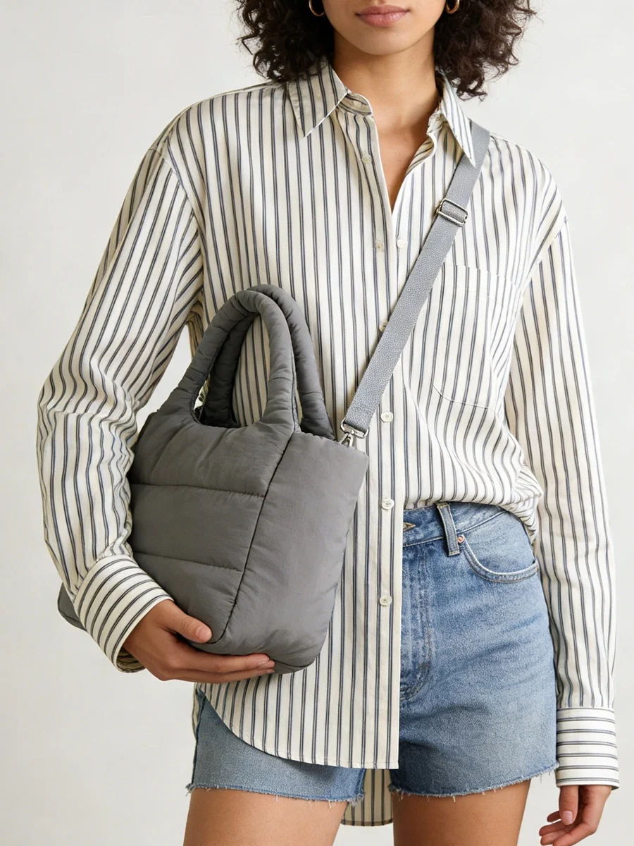 ↑Casual Chic Women's Cotton Nylon Quilted down oulder Bag Lightweight Tote Crossbody Handbag Striped Design Magnetic Bule - TopDealBox