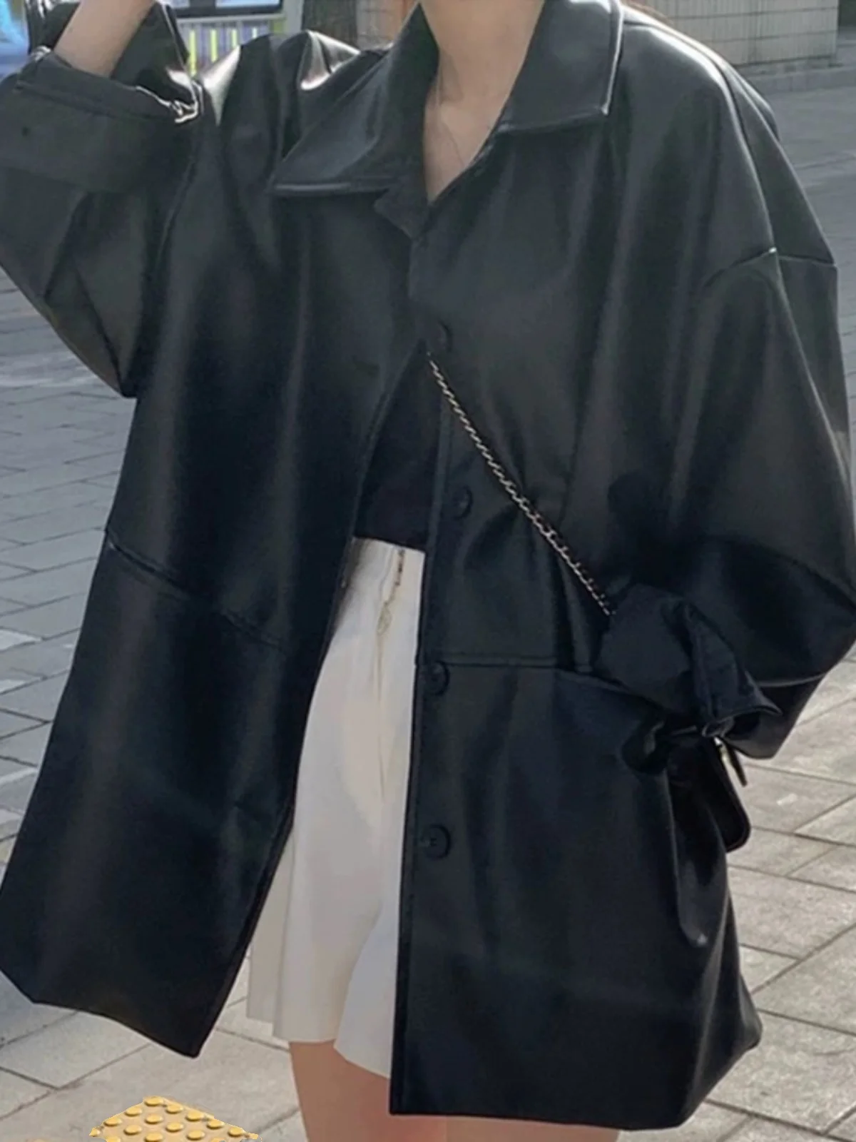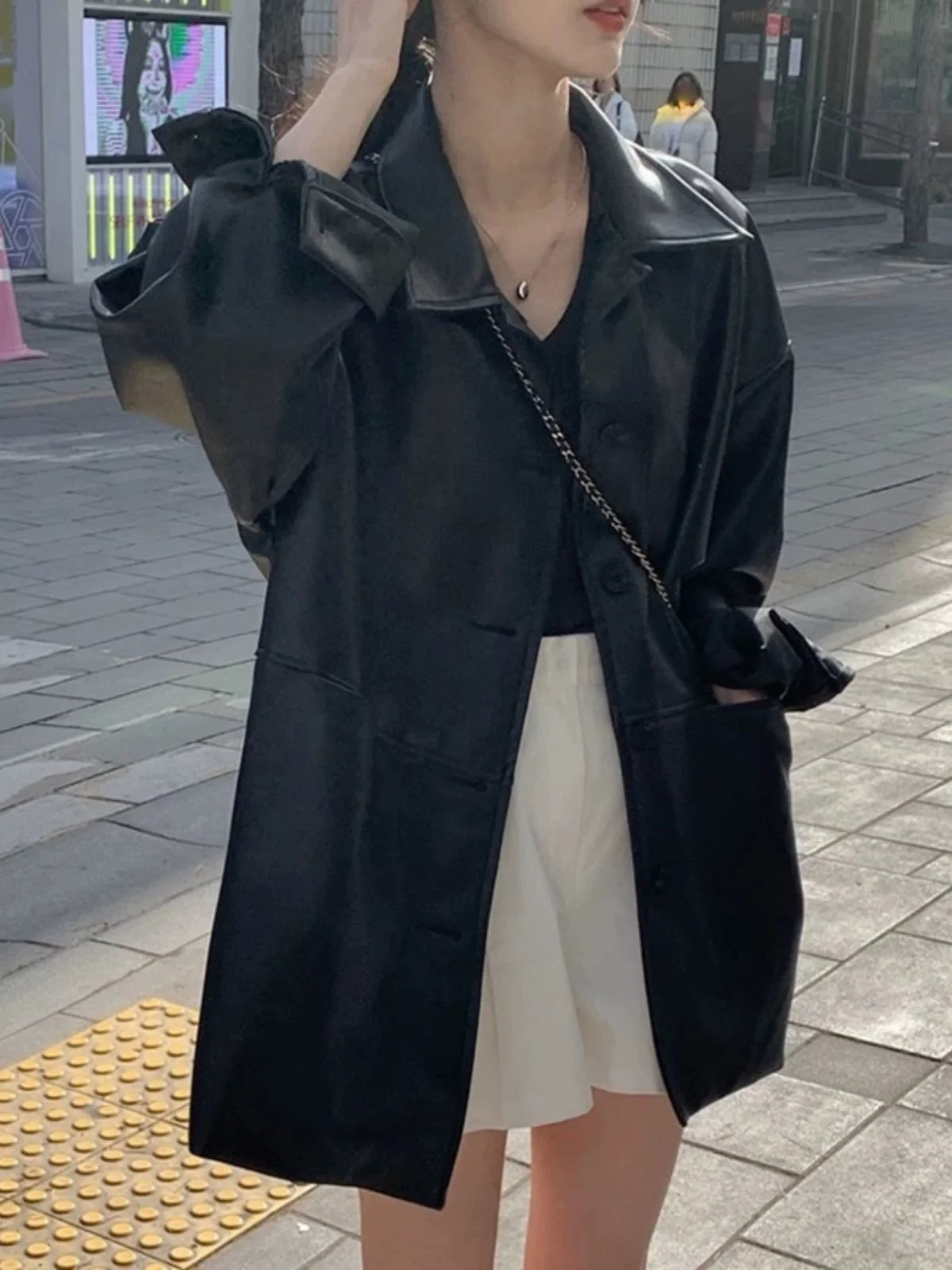 β‘Quick viewLoose Fit Bla PU Leather Jaet Women's Spring Autumn Faion Street Sle Retro Design Long Sve Suit Coat1032.17 UAHHotβ β β β β 4.3