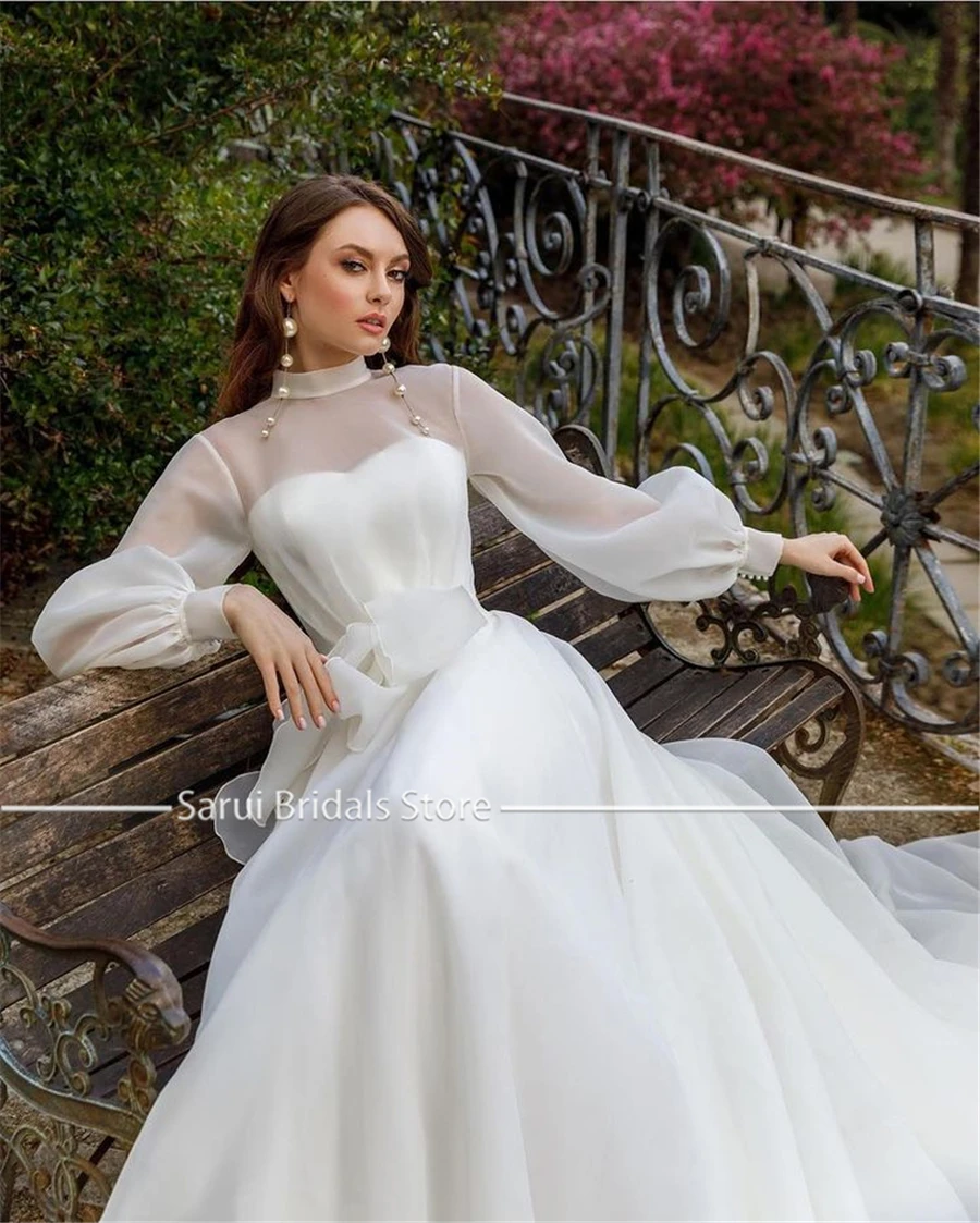 β‘Quick viewCustomized High Neck See Through Long Sleeves Organza Hot Sale Wedding Dress with Bow Dress for Bridal vestidos blancos de mujer3527.38 UAHHotβ β β β β β 4.9