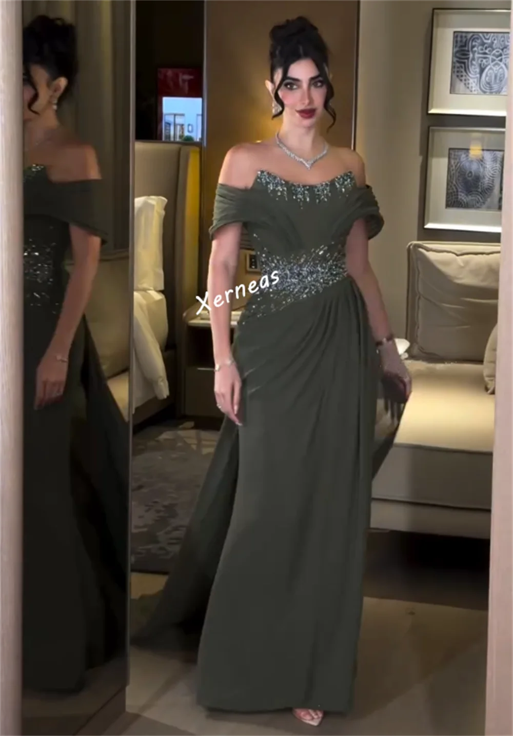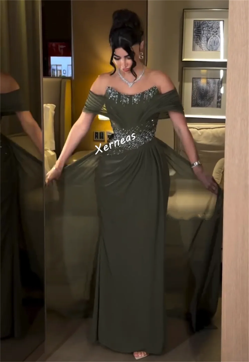 ↑Customized Formal Evening Dress Bespoke Occasion Pleat Off-the-shoulder Long Dresses Woman Elegant Party Glitter Sexy - TopDealBox