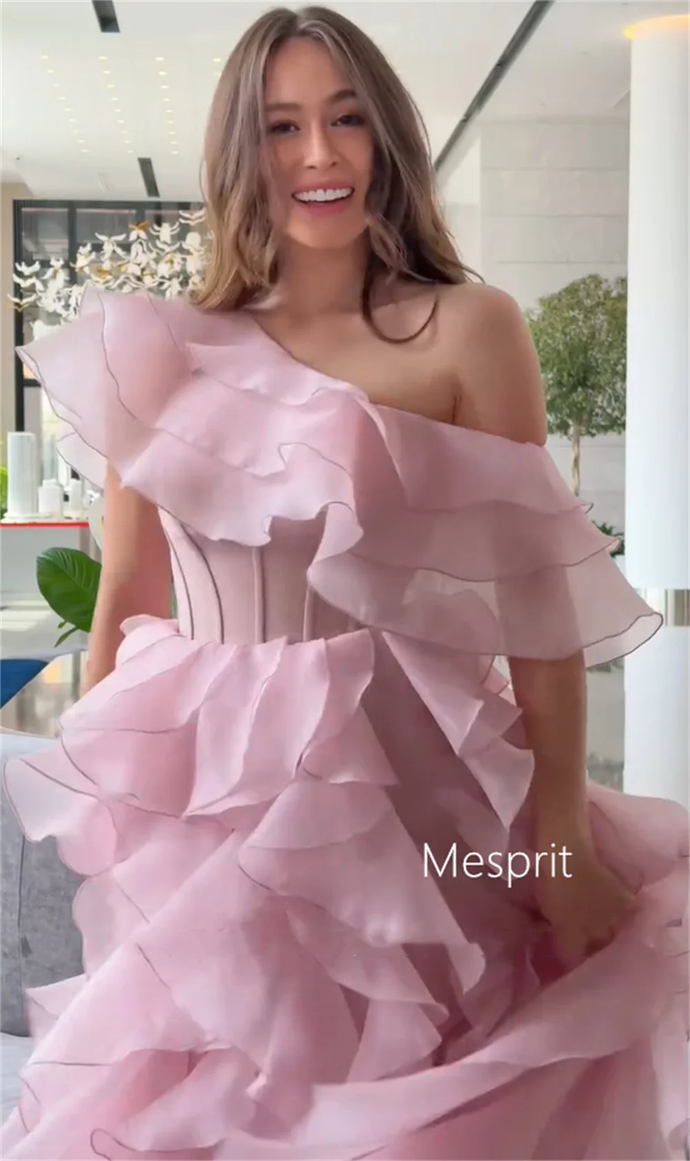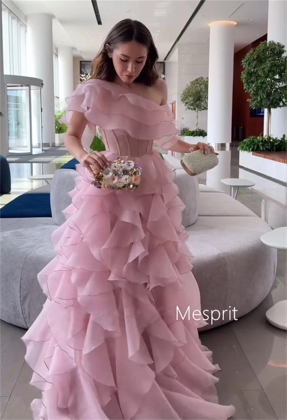 ↑Customized Sparkle Organza Pleat Ruffle A-line Off-the-shoulder Long Dresses Bespoke Occasion Prom High Quality Exquisite - TopDealBox