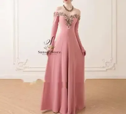 ↑Customized Strapless Draped A-line Jersey Evening Dress Flower Appliques Full Sleeve Party Dress Backless Floor Length Prom Gown - TopDealBox