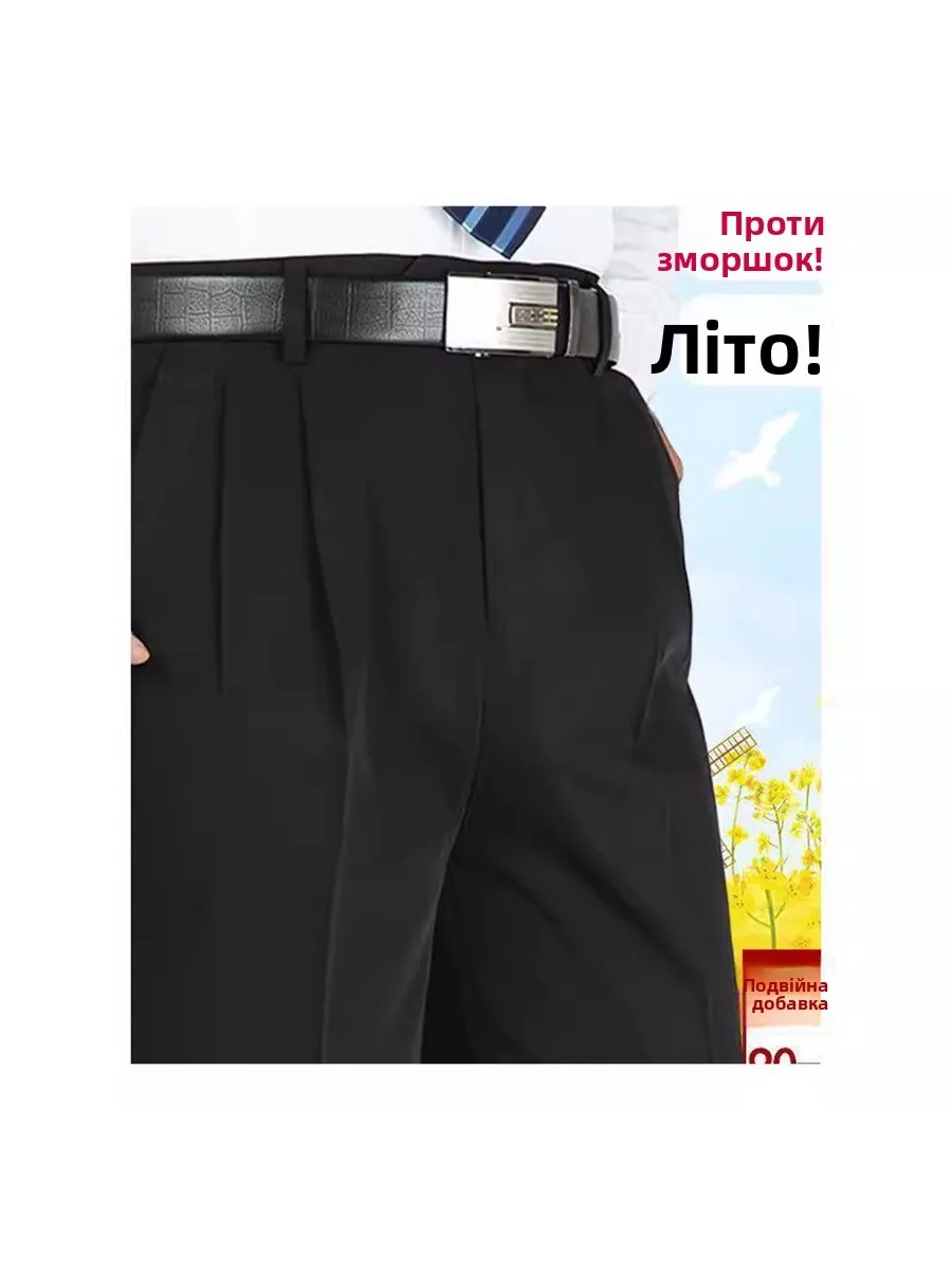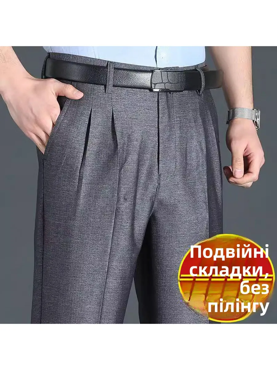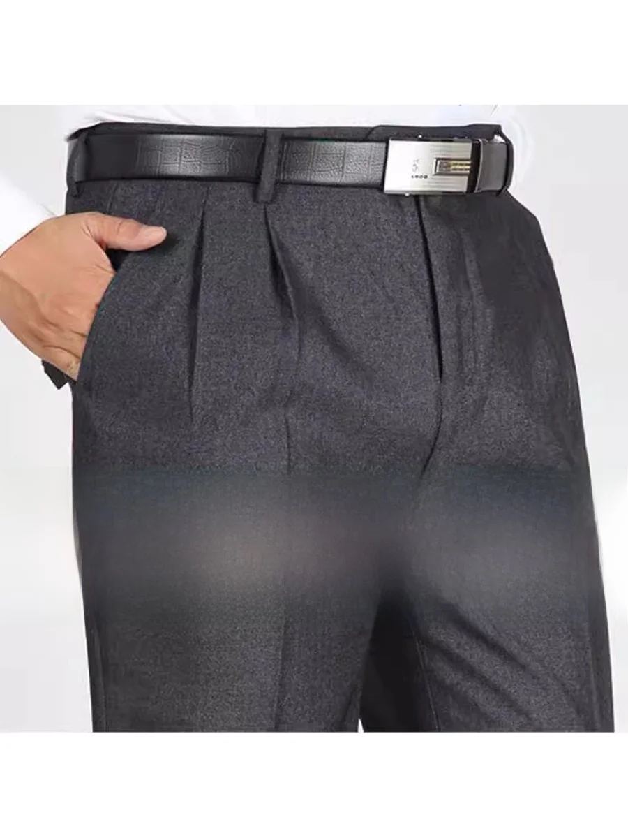 ↑Double Pleat Men's Dr Pants High Waist Deep Crotch Anti-Wrinkle No Ironing Busin Casual Long Trousers for Middle-Aged A... - TopDealBox