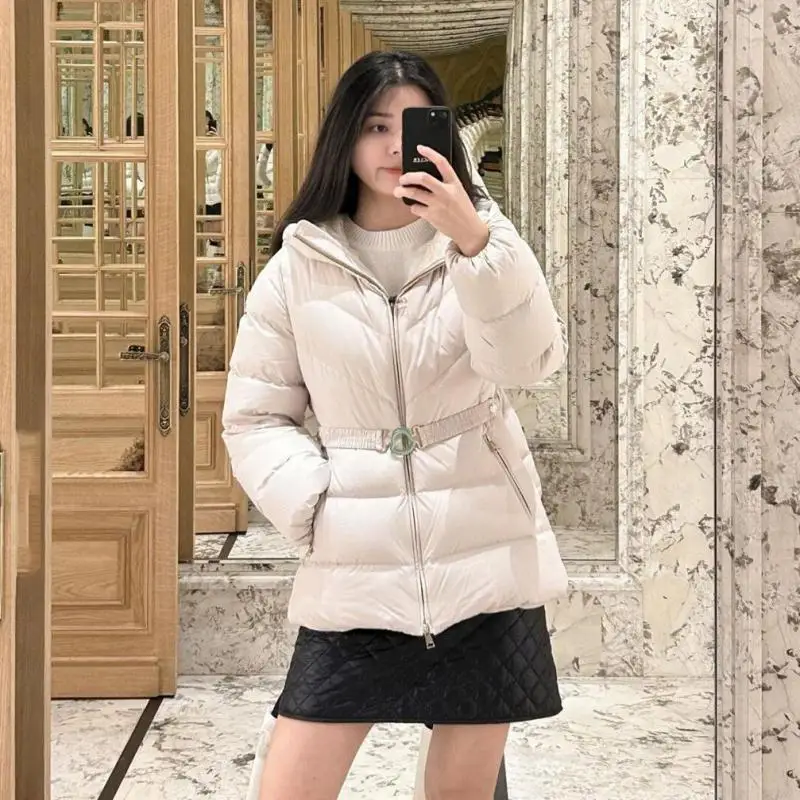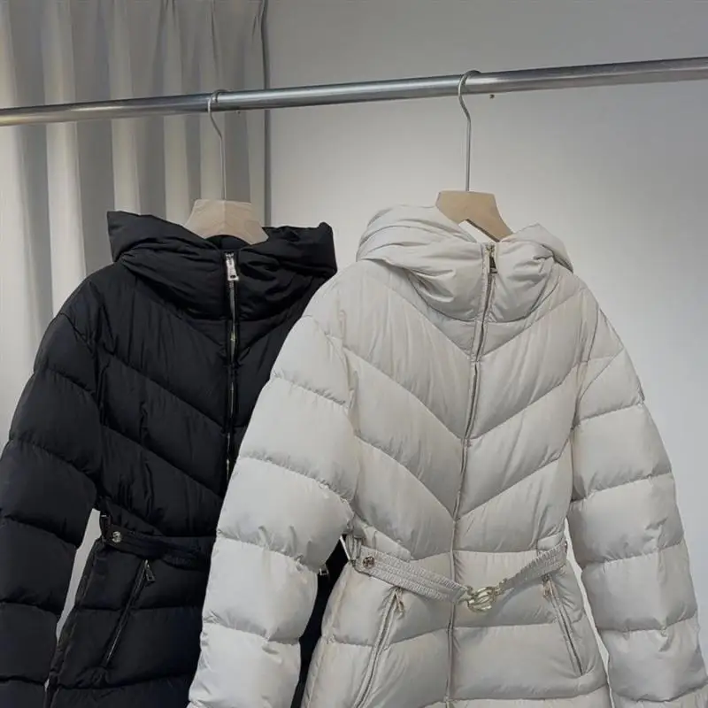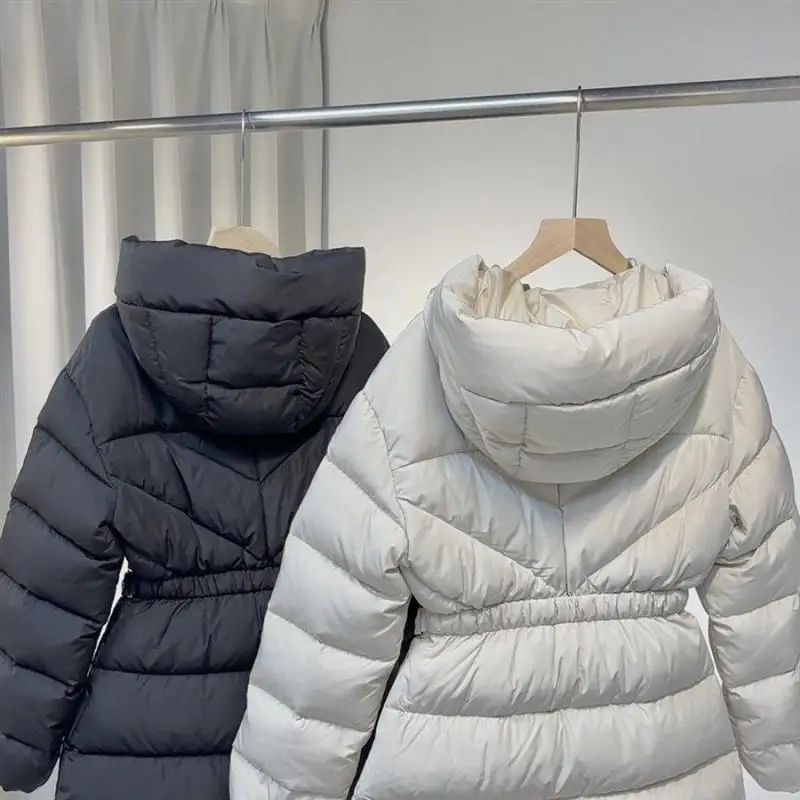 ↑Ele White Du down Hooded Jaet Women's Faion Week Trendy Slim Fit Outerwear Luxury Simple Sle Coat Zipper Closure - TopDealBox