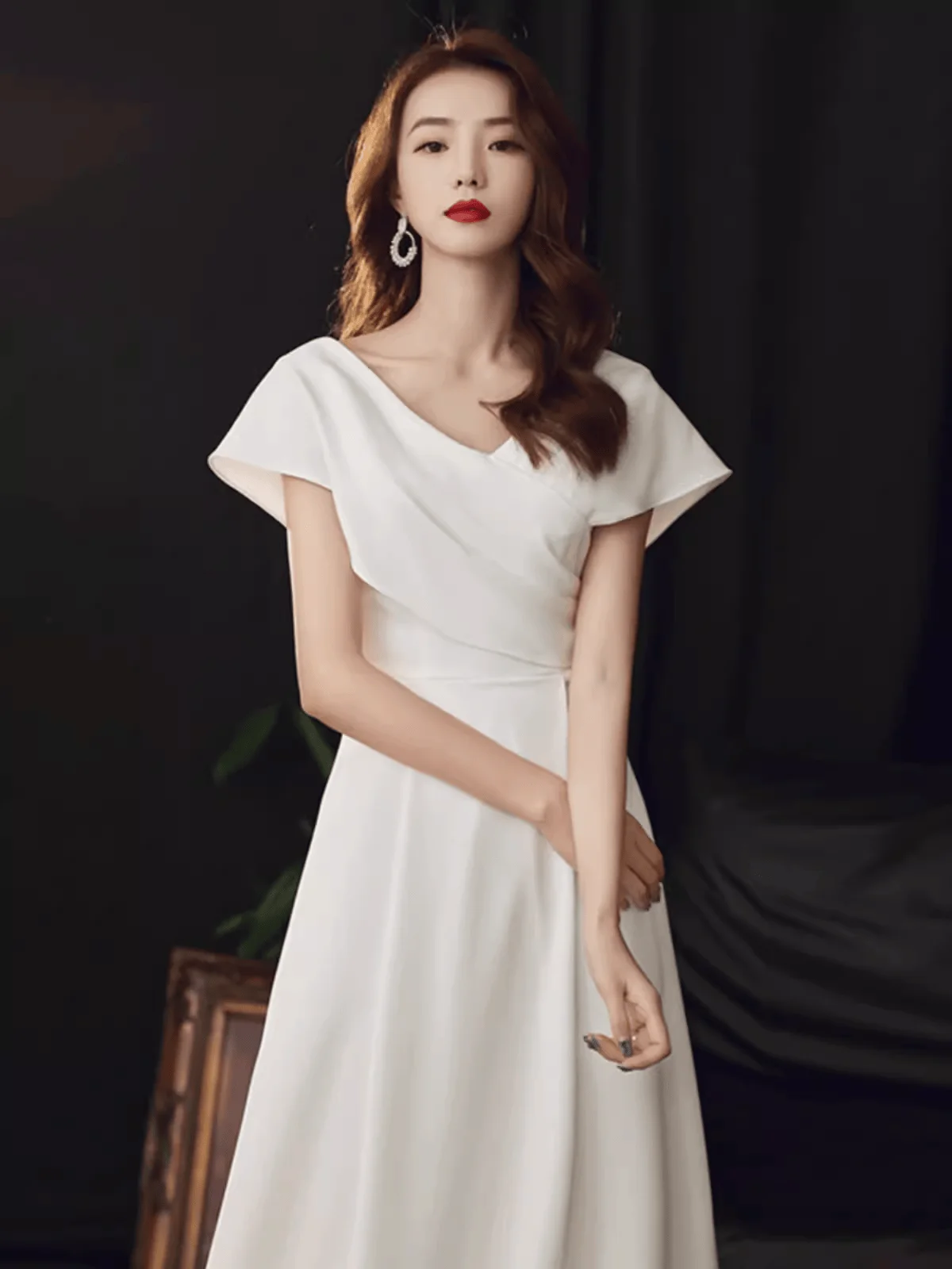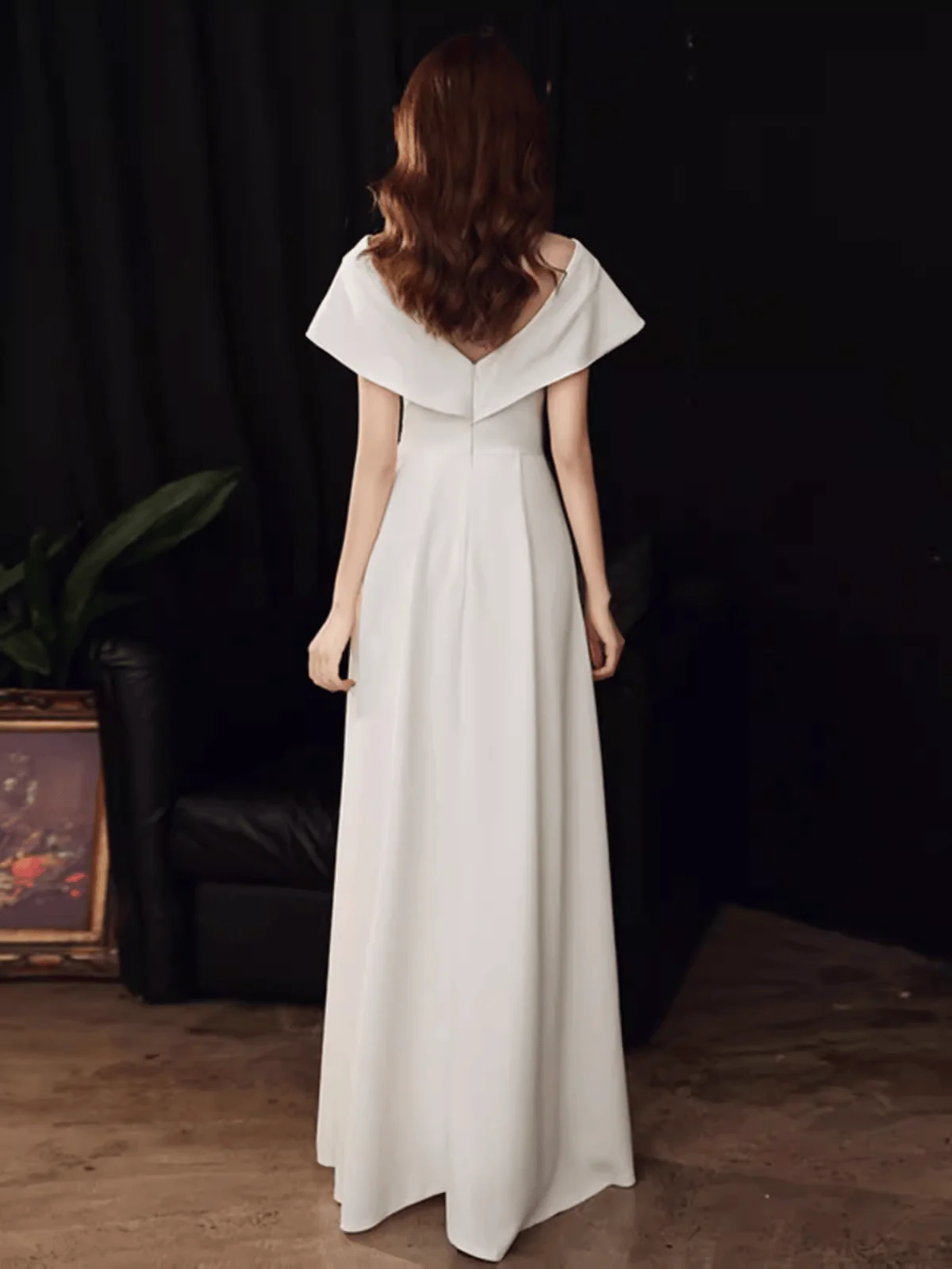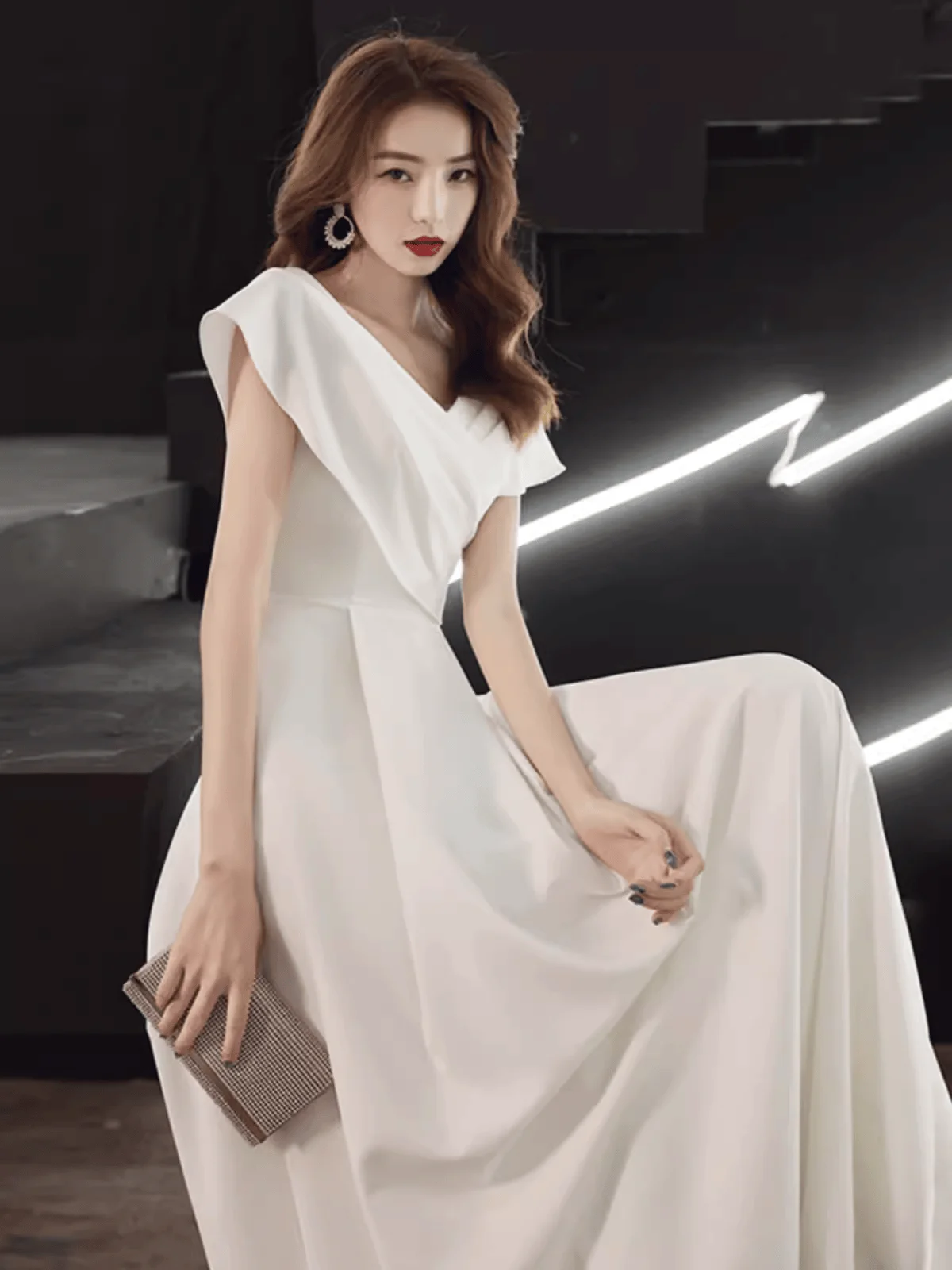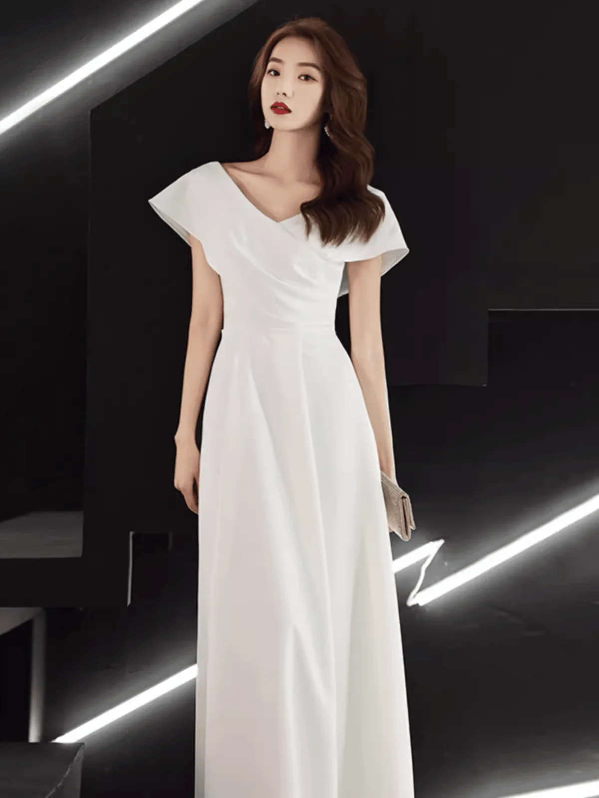 ↑Ele White Evening Gown Host High Waist A-Line Skirt Long Dr for Art Exam Banquet Wedding Ceremony Registration - TopDealBox