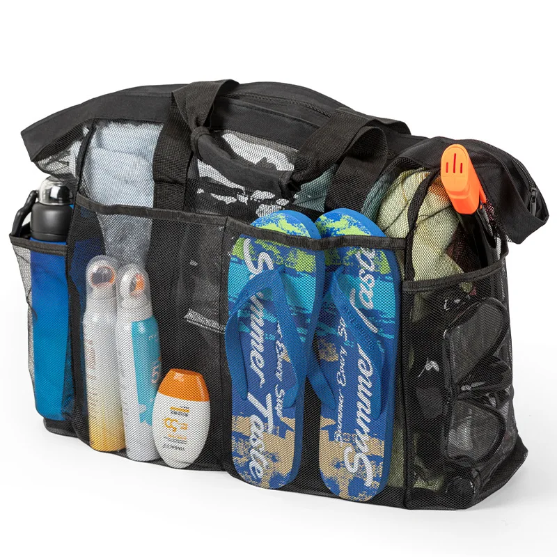 ↑Extra Large Beach Bag - Lightweight, waterproof, foldable, with mesh straps, zippered pockets and fixed shoulder straps - TopDealBox