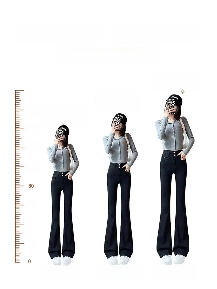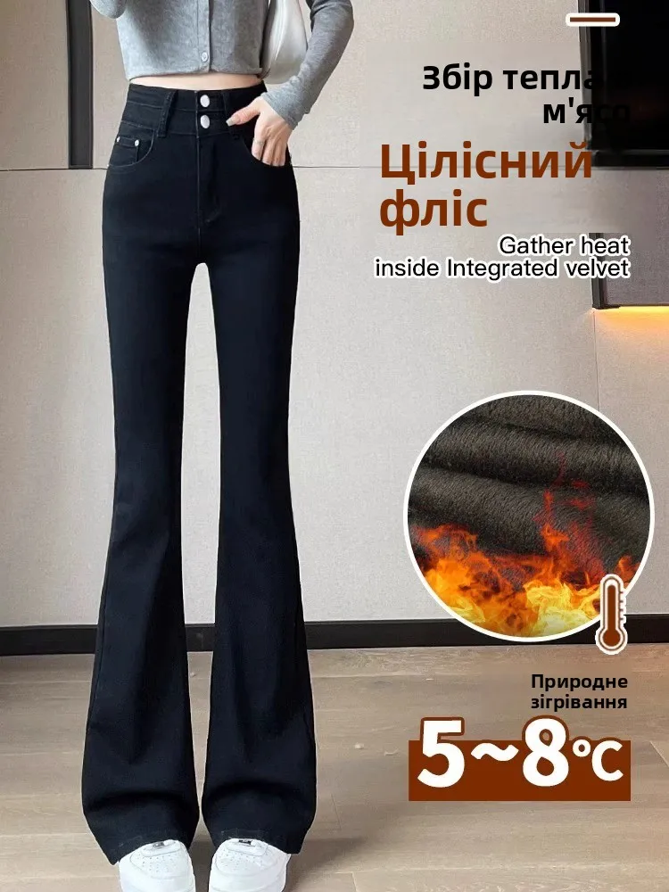 ↑Fce Lined Thi High Waist Bell Bot Jeans Women Slimming High Risen Bla Floed Flared Hoof Pants Winter - TopDealBox