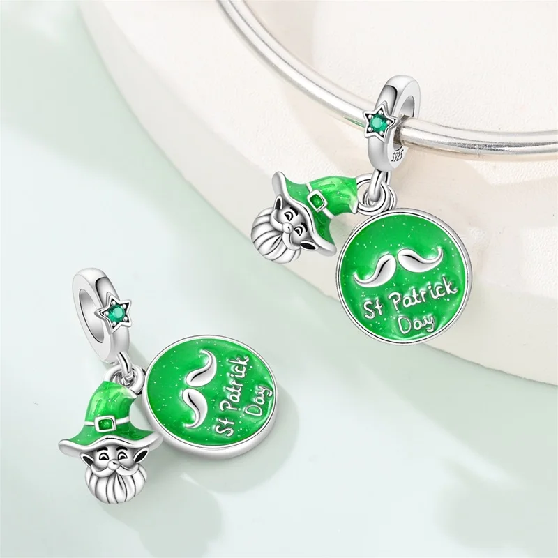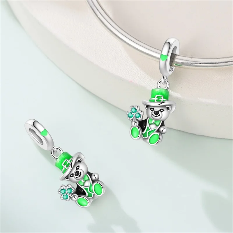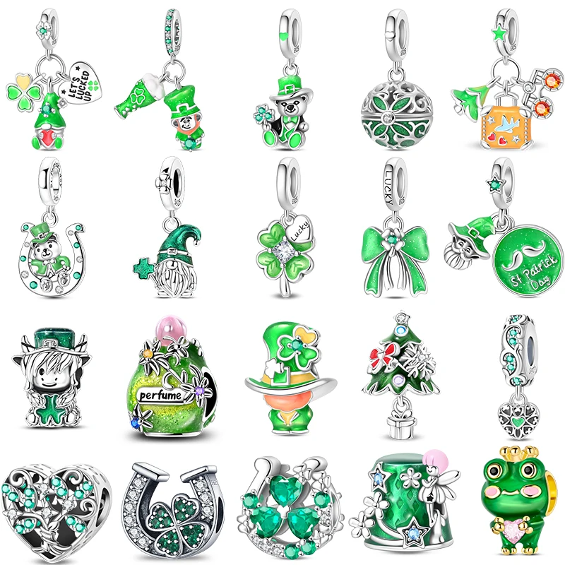 ↑925 Sterling Silver Green Series St. Patrick's Clover Pendant DIY Charm Beads Fit Original Bangle Charms Bracelet Women Jewelry - TopDealBox