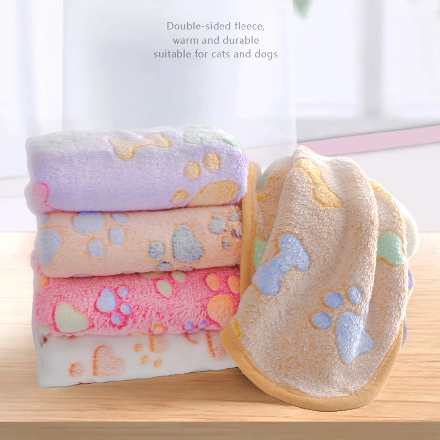 ↑Flannel paw print pet blanket for warmth, softness, and no shedding of fur, universal blanket for cats and dogs, cat pad - TopDealBox