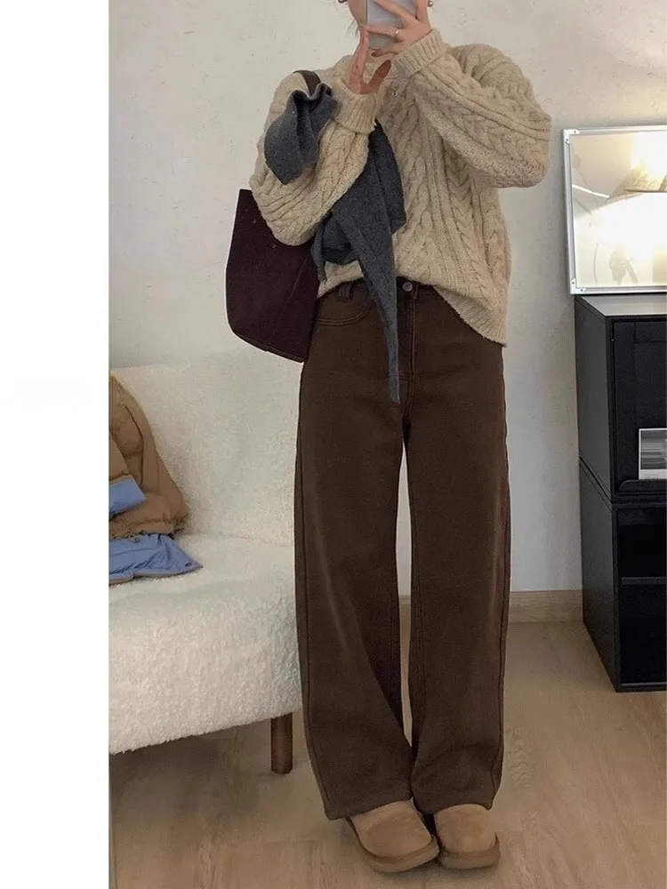 β‘Quick viewplus Size Fce Lined White Jeans Women's Autumn Winter Loose Straight Leg Wide Leg Pants High Waist Casual Sle Denim Jeans481.77 UAHHotβ β β β β 4.4