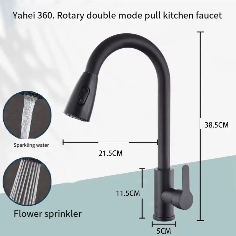 ↑Kitchen Faucets Brushed Nickel Pull Out Kitchen Sink Water Tap Deck Mounted Mixer Stream Sprayer Head Hot Cold Taps Sliver - TopDealBox