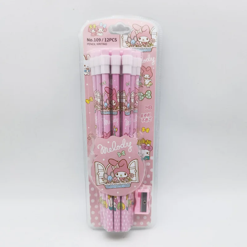 ↑Kuromi HB Pencils 12 Pencils & 1 Pencil Roller Stationery Box Set, Student Writing Drawing HB Pencils Sketch Pens - TopDealBox